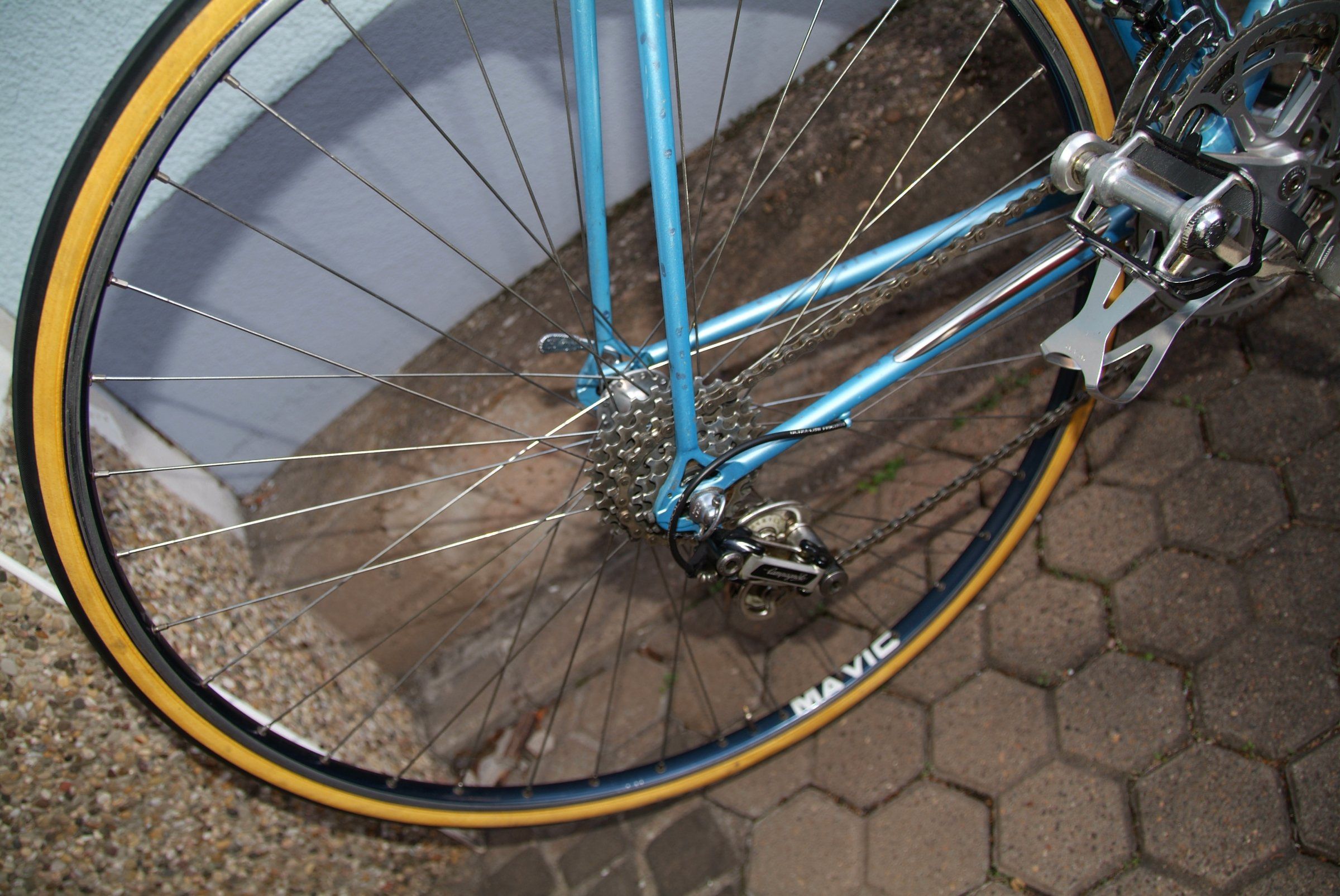 da besteht noch Optimierungspotzenzial.Bis zu dem Zeitpunkt befand sich der Aufbau finanziell noch im grünen Bereich, obwohl ich mich von dem Gedanken verabschiedete, die original verbauten Mavic Super Arçenciel mit den Wolber Invulverable Schlauchreifen zu bekommen.