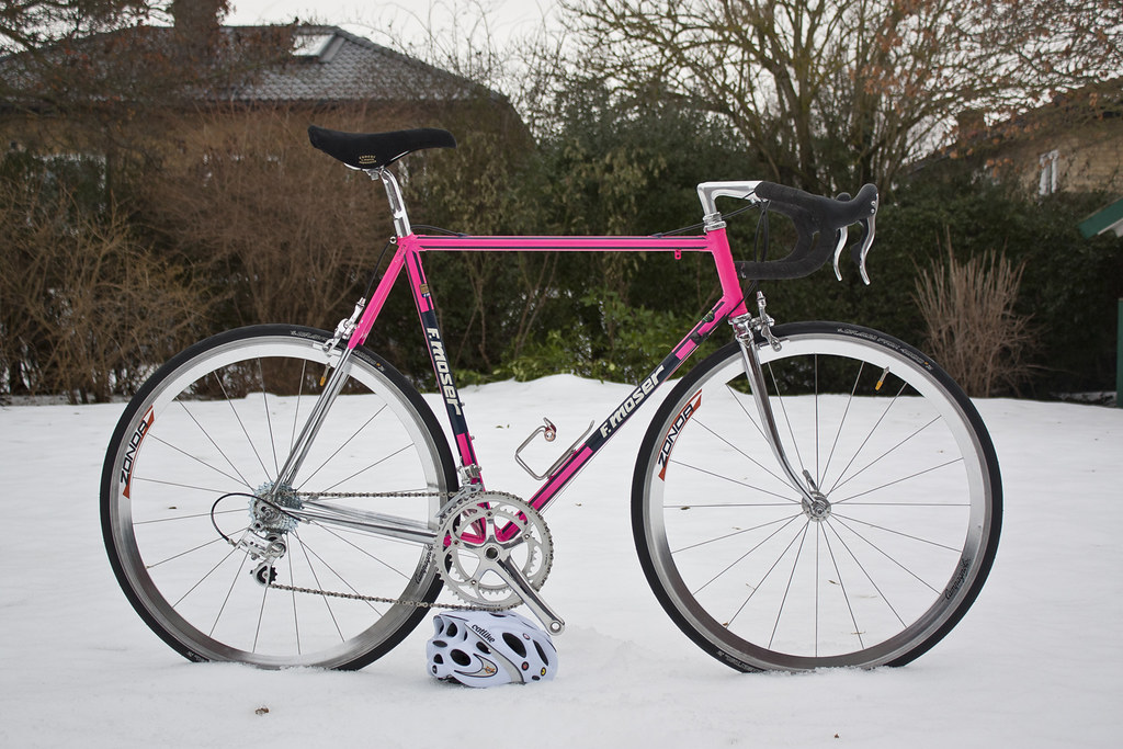 Stimmt sieht neu lackiert aus aber,Hoffen wir mal, dass es auch ein Moser ist. Die ganzen französichen Sachen am Rad, Weinmann Bremsen, sieht auch neu lackiert aus (einige Einschlüsse usw.). Die Aufkleber gibts überall. Nach 40 Jahren sehen Aufkleber + Lack eigentlich anders aus, an Kurbel und Vorbau ist der Lack ja auchb abgeblättert. Top erhalten und wurde fast nie gefahren; mhh??. Einzig der Rino Steuersatz und die Giepiemme Kurbel machen Hoffnung (allerdings verbaut man sowas normal nicht zusammen)