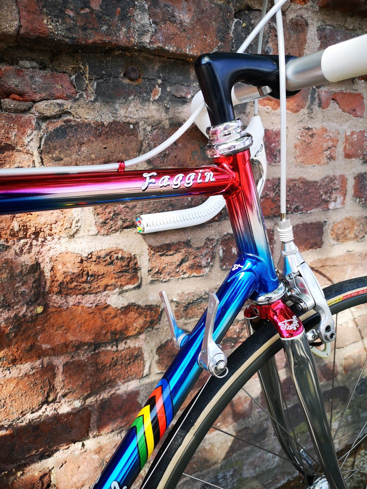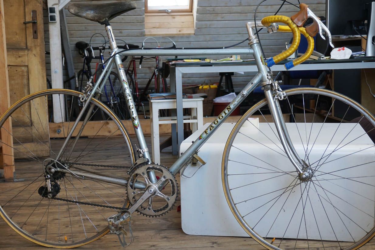 Ich hab nur ein Faggin, damit fahr ich aber recht gern, ich vermute es ist von ca. 1978-79 wegen der Porta Catena Ausfallenden und den Decals so wie den Galli-Teilen, lass mich aber gern eines besseren belehren.