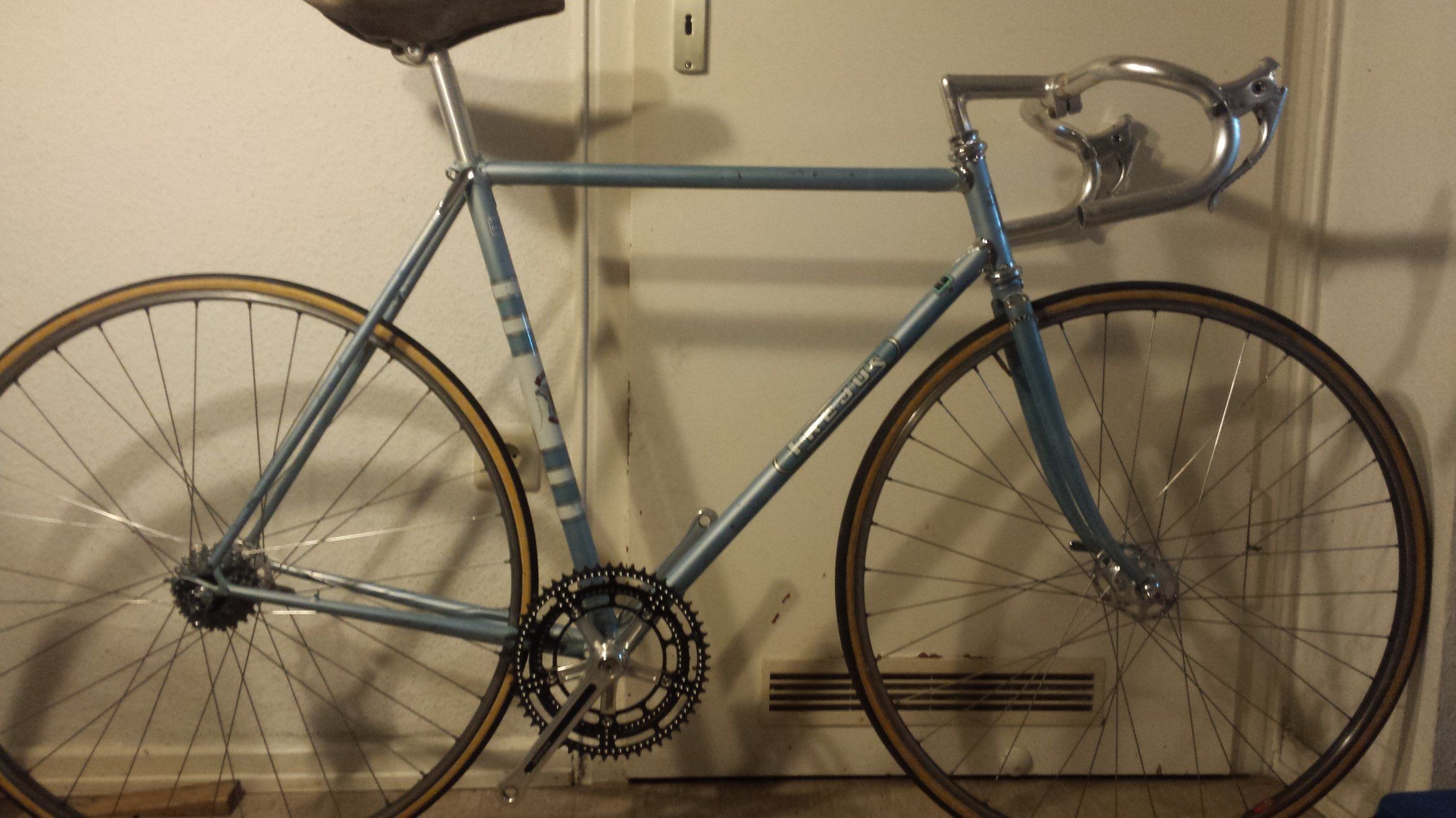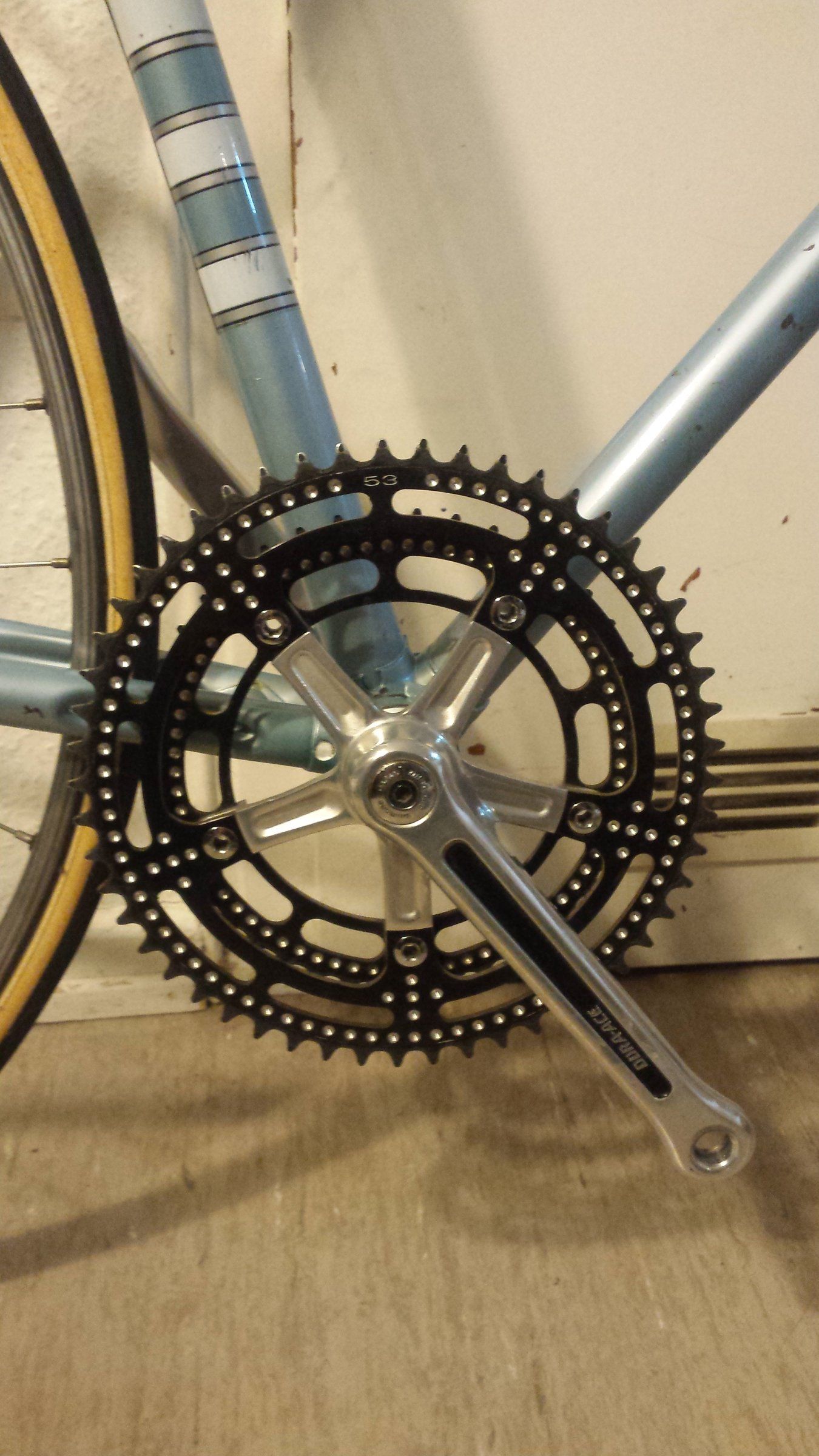 Ein LR mit ner HF DA Black könnte ich dir bei Interesse anbietenJetzt habe ich schonmal das Innenlager schön sauber gemacht,gefettet und wieder eingebaut.Die Kurbel mit dem gelochten Kettenblatt die ich noch hatte passt gut.Bei den Laufrädern bin ich mir noch nicht sicher aber die Hochflanschnaben auch 1 Generation Dura ace aber nicht in schwarz passen meiner Ansicht besser als die schon montierten.Ausserdem muss das schon mit den Schlauchreifen stimmen.Aber jetzt muss ich mal die anderen Teile fertig machen