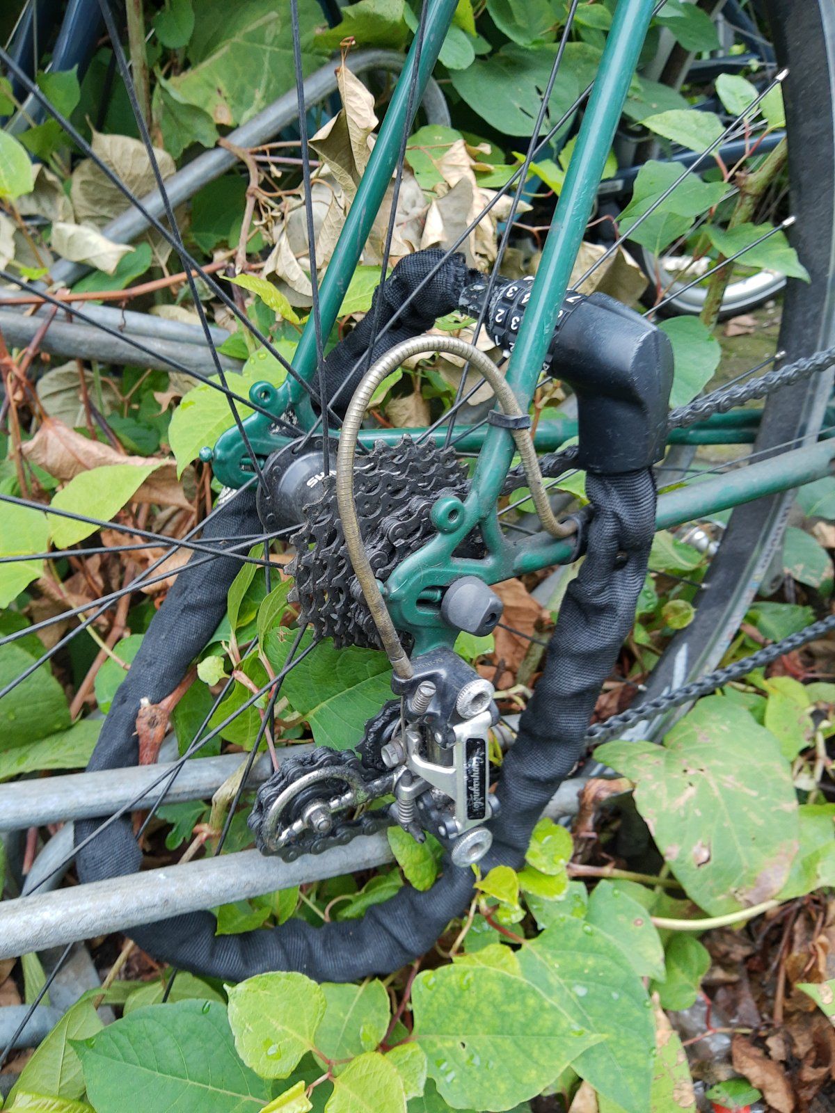Was tun, wenn die Gabel zu sehr gestaucht ist und schon am Rahmen schleift? Genau! Einfach umdrehen... Immerhin hat der Fahrer gleich ein Ersatzfahrzeug auf dem Gepäckträger dabei :D
