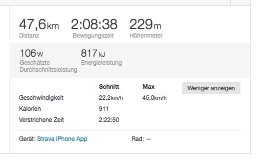 Mein Fazit aus den bisherigen Erfahrungen: die Fehlerquellen sind recht vielfältig und so sehr ich Strava mag, nicht alle Daten sind wirklich aussagekräftig und vergleichbar. Insbesondere die "Bewegungszeit" tendiert bei mir dazu mitunter (deutlich) zu hoch zu sein im Vergleich zu meinem Fahrradtacho. Hinsichtlich der Entfernungsangaben hatte ich jedoch bisher keine signifikanten Probleme; teils lagen die Differenzen auf Strecken von >100km bei nicht einmal 500m. Mehr kann man nicht erwarten.