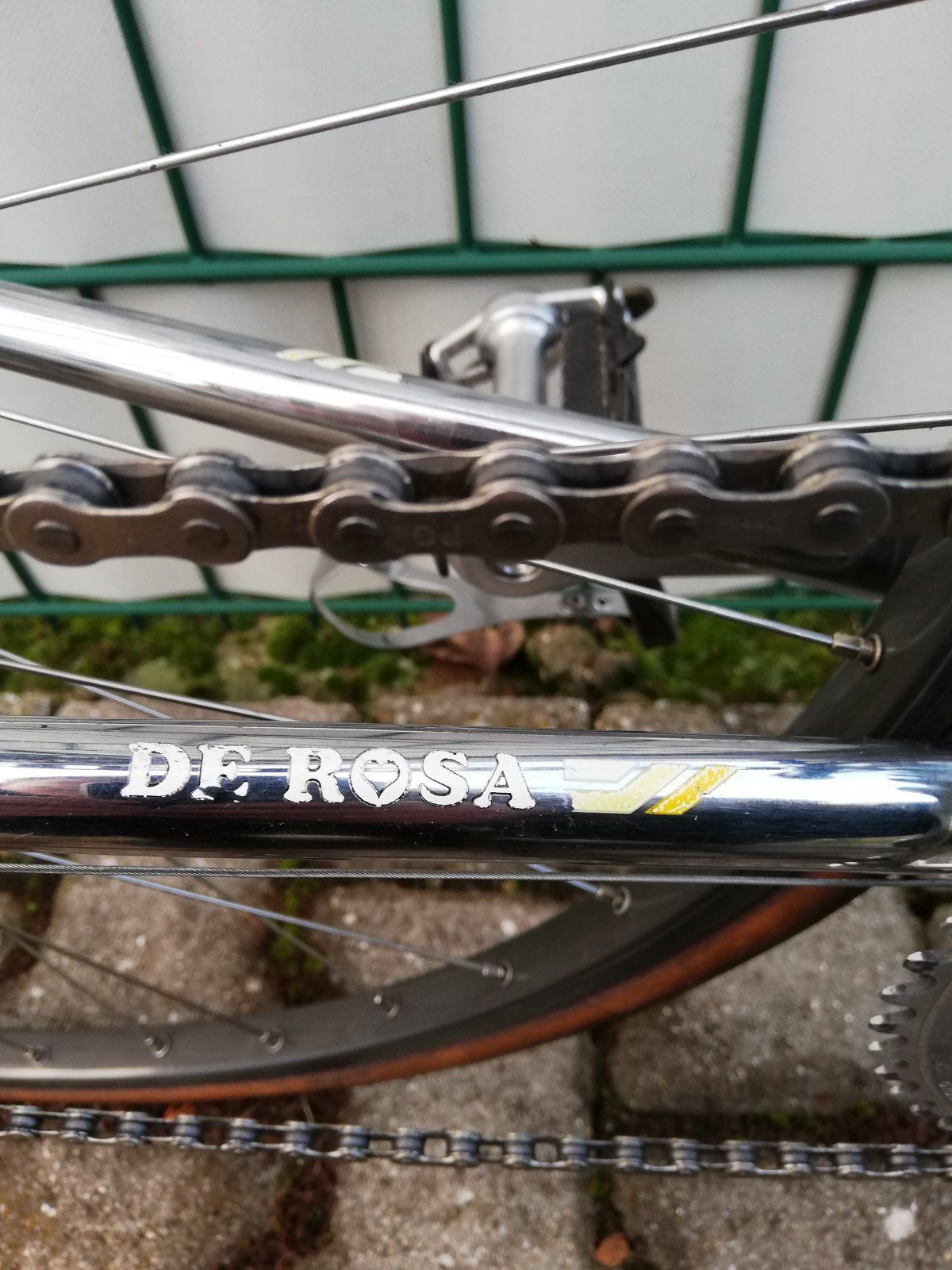 Ich würde dem de Rosa helle Reifen und gelbe Akzente verpassen. Vielleicht Gelbe Züge? Gelbe Riemen? Irgendwas, was das Gelb des Rahmens aufnimmt.