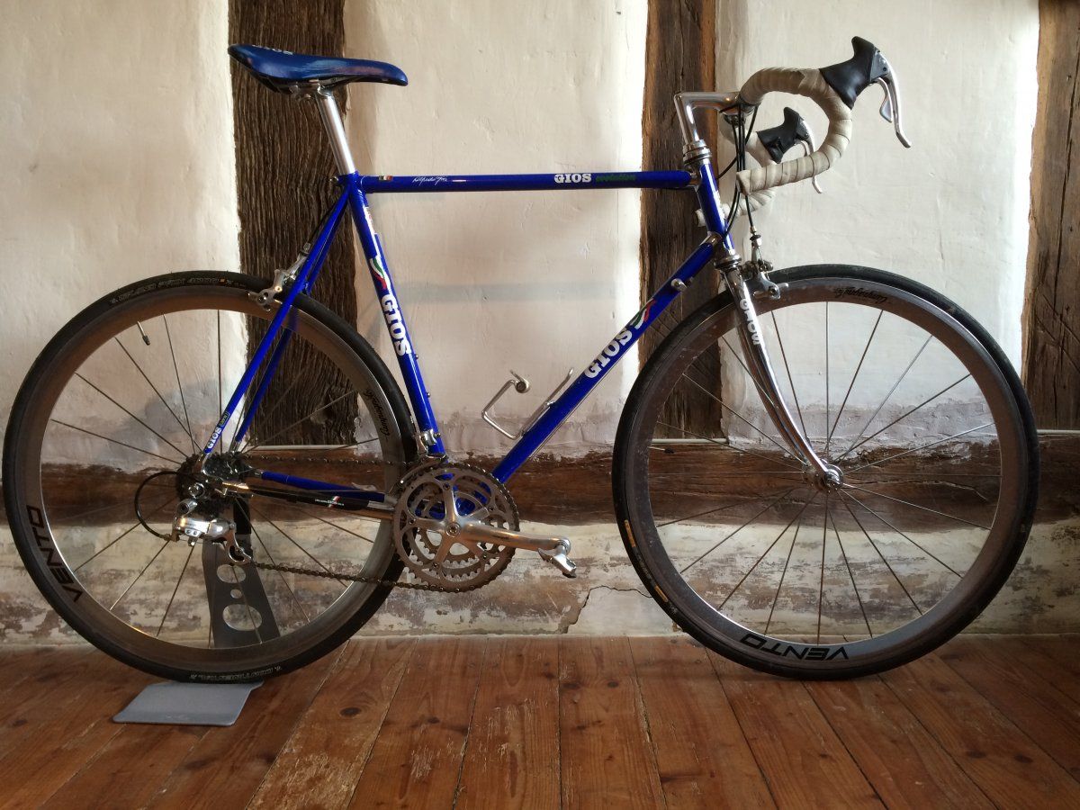 Dank des Forums habe ich ja schnell herausgefunden, dass es ein Gios ist und nicht irgendein Baumarkt-Schrott ( danach sah es damals eher aus)... Leider waren die originalen Teile durch Shimano-Teile ersetzt worden oder fehlten ganz, die Gabel ist auch nicht mehr original...