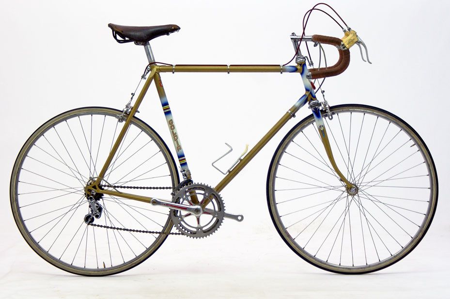 Über Goldia gibt es kaum Informationen die über die Angaben auf der Steuerrohrplakette hinausgehen: Der Rahmenbauer ist Hans Mueller aus Goldach am Bodensee in der Schweiz. Ansonsten findet man ganze 4(!) Goldia Räder im WWW. Die Forumssuche ergab ebenfalls nichts!