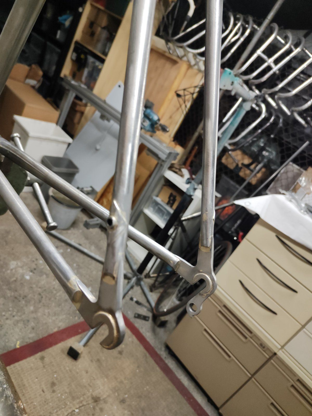 So, wie Du die Sitzstreben angelötet hast, würde ich zumindest eins der Gewinde jeweils direkt ins "Fleisch" der Ausfallenden schneiden. Wenn dort dann der Träger dran soll, achte darauf, dass seine Streben und Befestigungsteile nach oben an den Enden der Sitzstreben vorbei passen (damit habe ich mich selbst schon zweimal in Bedrängnis gebracht