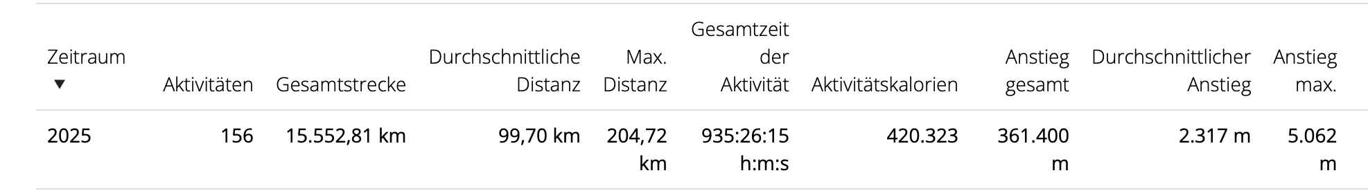 Bin in 2021 bisher 4.787 km gefahren und habe 69.295 Hm drauf.
