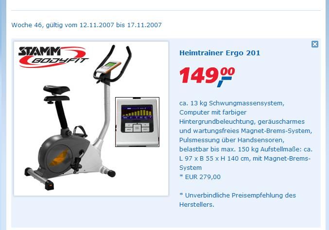 ich hab da eine frage bezüglich des Heimtrainer der Marke Stamm Bodyfit Ergo 201 ,denn gibts nächste Woche im Real, meine Frage taug das ding was oder muss ich gleich ein Tomahawk kaufen??