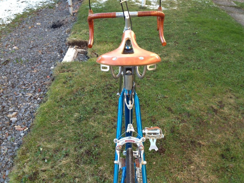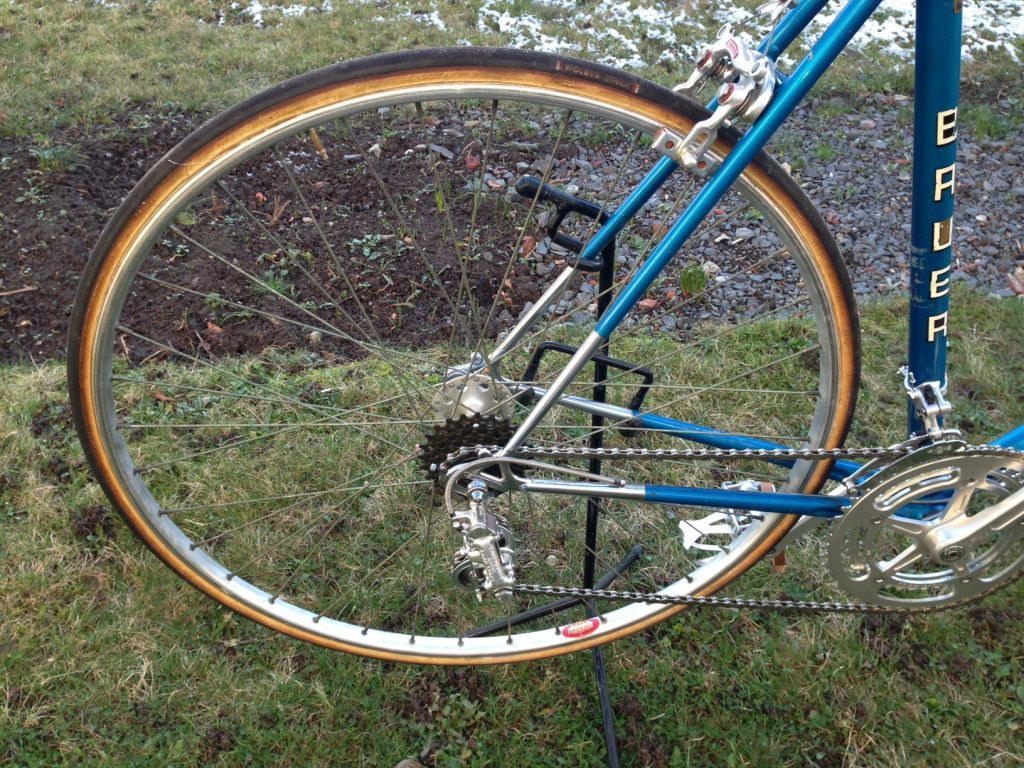 Schaltung ,Pedalen und Kurbelei Campagnolo Nuovo Gran Sport.Sattelstütze Campa,Bremsen und Hebel Weinmann.Felgen Super Champion Competition für Schlauchreifen,Naben Campa Nuovo Tipo Hochflansch.Sattel ein wenig genutzter Diamant Ledersattel.Lenker und Hebel mit Gewebeband gewickelt und mit Schelllack versiegelt.