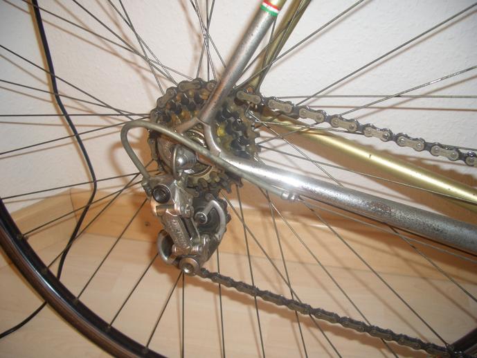 Hi, ich habe hier einen wunderschönen alter Laufradsatz mit Campagnolo Chorus (Die alten zum einstellen mit Imbus) Naben und Rigida DP 18 Felgen. Hatte noch nie einen so leichtläufigen LRS in der Hand. Die Naben sind in einem Top Zustand und haben so gut wie keinen Kratzer. Alle Teile glänzen wie Neu. Beide Laufräder sind mit je 36 Speichen und laufen sehr steif und rund. Hinten ist eine nahezu neuwertige 8-Fach Kassette drauf. Der einzige mangel ist dass die hintere Felge nicht mehr so schön ist. Mein Vorbesitzer hatte da wohl mal die Bremsschuhe falsch eingestellt. ist aber nur ein kleiner Optische mangel. Siehe Bilder.