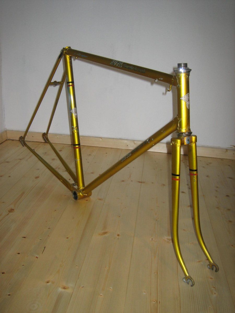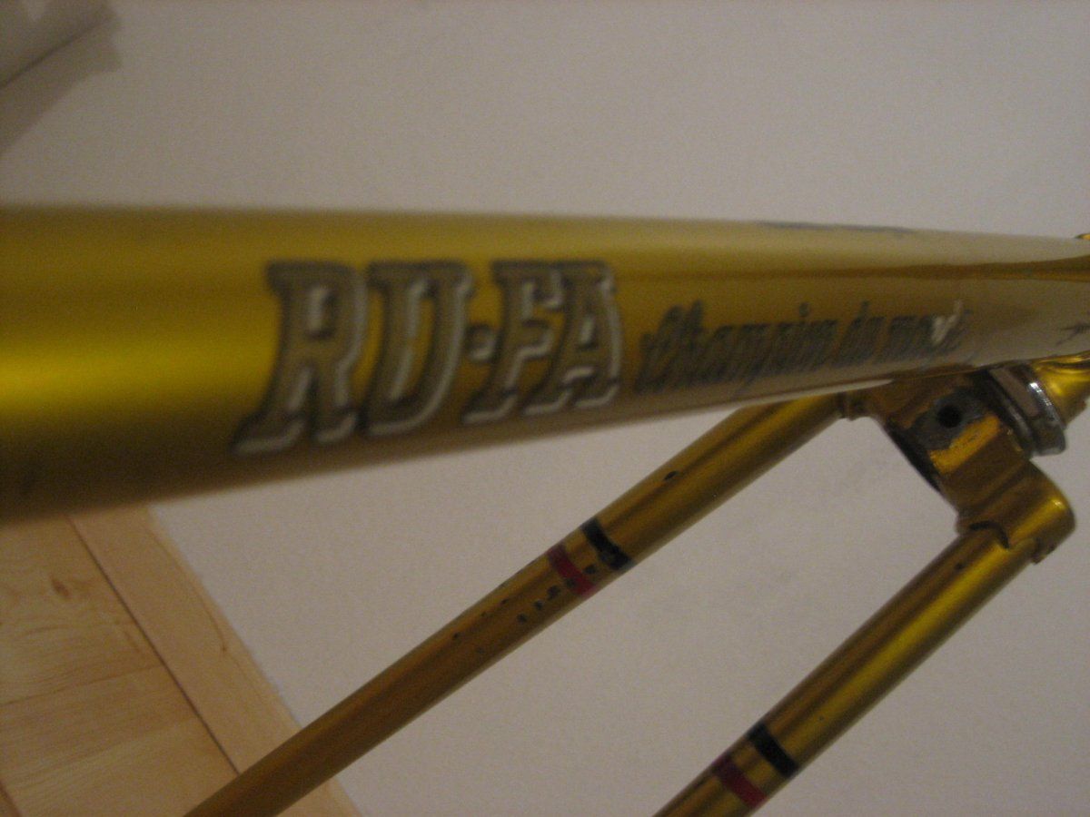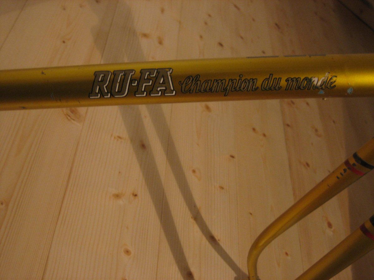 Was es ist, oder zumindest was es vorgibt zu sein, das steht ja drauf: RUFA champion du monde. Der Wert ist mir egal, habe es vor kurzem erst erstanden zu einem Preis der es mir wert war und ist. Aber das Geburtsjahr, dass würde ich gerne wissen, da ein altersentsprechender Aufbau geplant ist ... Merkmale: Nervex- Pro Muffen, Blech- Ausfaller, pornös- goldener Lack ... Hat jemand von Euch 'ne Ahnung? Liege ich mit Ende 50er richtig?