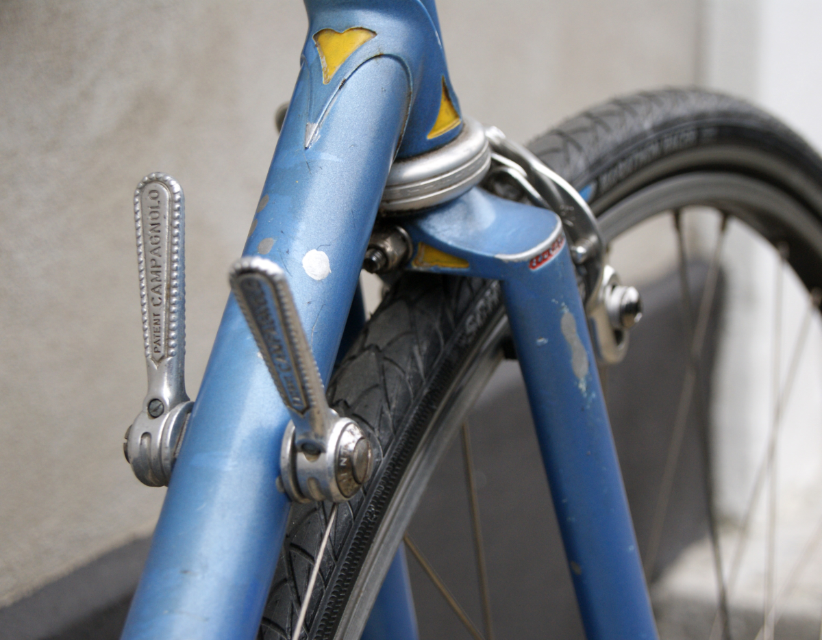 Rahmen wurde gestrahlt und gepulvert. Bremsen werden noch gewechselt. Zeitgemäße Pedalen sind verbaut. Campagnolo Victory Kurbel, Umwefer Schaltwerk, Schalthebel und Schalthebelschelle sind poliert. SR Laprade Sattelstütze gold lackiert. Was sagt ihr zu dem Renner?