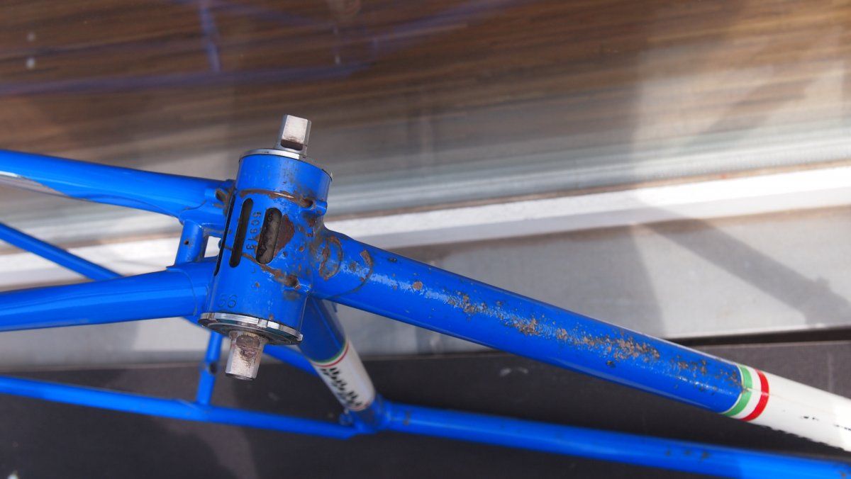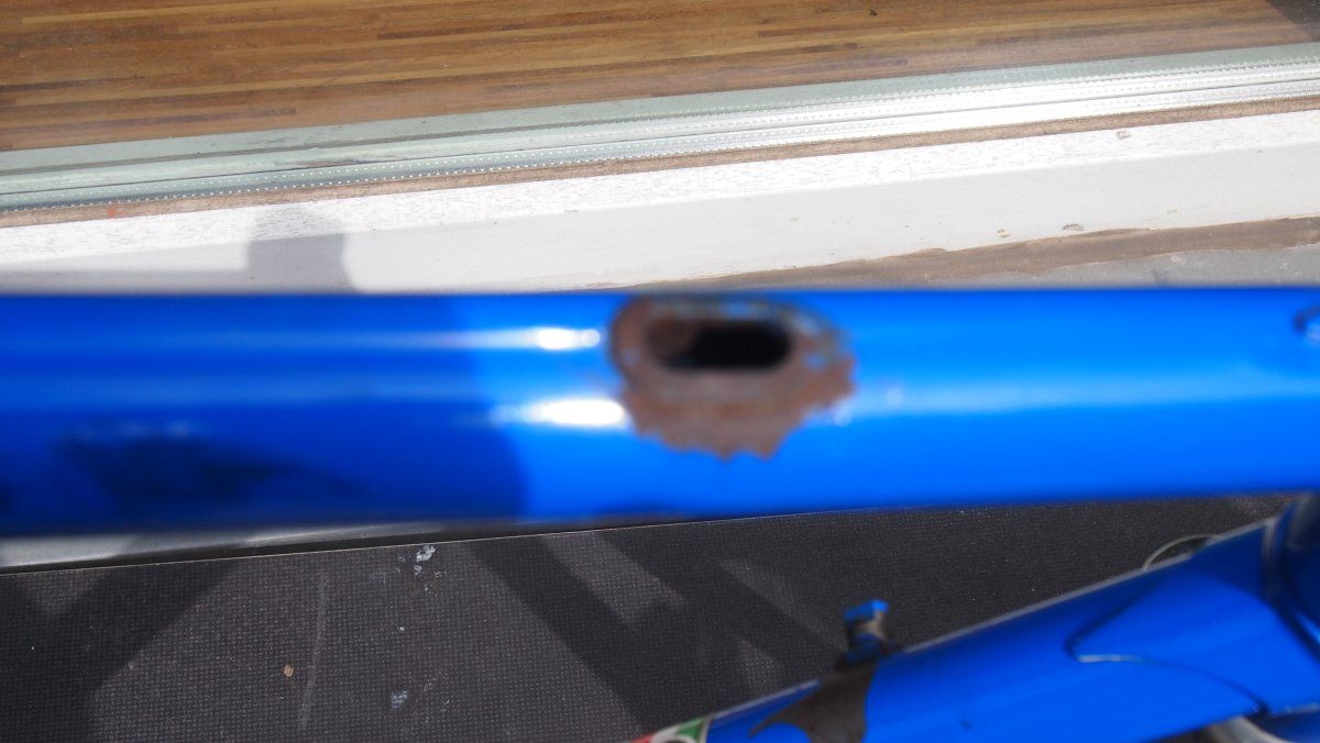 Die typische Stelle am Oberrohr,wo Feuchtigkeit durch die Zugführungen hat eintreten lassen,hat das OR in Mitleidenschaft gezogen.