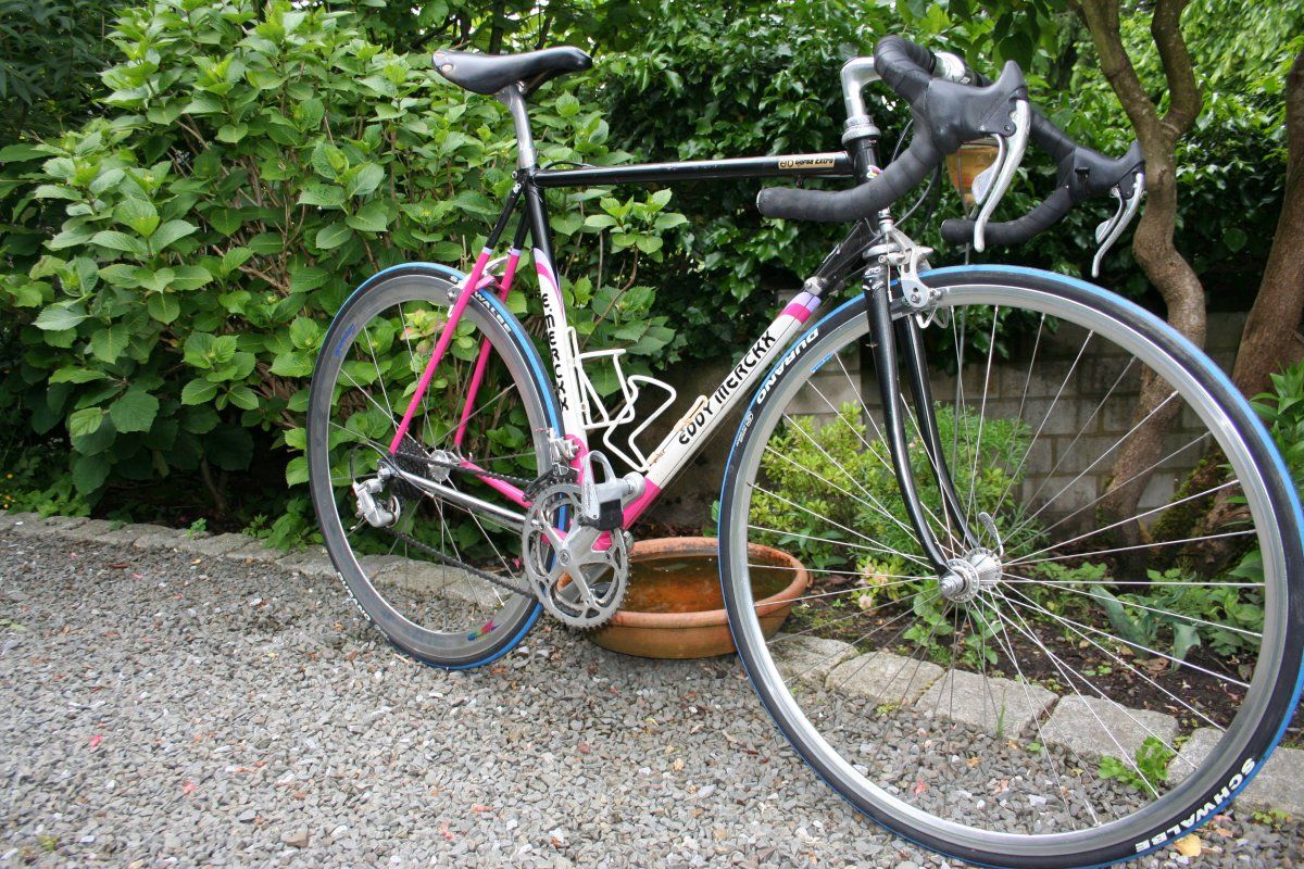 Dabei bin ich auf die Rahmennummer am Tretlager gestossen. Sie lautet c9895 . Der Rahmen trägt die Team-Telekom Lackierung und den Schriftzug "Corsa Extra" am Oberrohr.