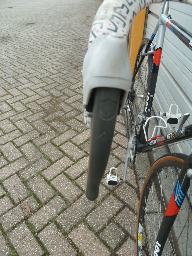 Die Rahmenhöhe ist 60 cm (c-t). Es gibt zwei Probleme: 1. Die Gabel ist angeknackst, auf beiden Seiten unter der Muffe, rechts auch die Muffe. 2. Der Lack ist nicht gut. Es hatte relativ große Rostflecken, ich habe da mit Rostumwandler (und anschließend etwas Klarlack) experimentiert. Das Ergebnis war ein guter Diebstahlschutz durch rustikale Patina. Ich bin es trotzdem gerne gefahren, bis ich letzte Woche das Problem mit der Gabel bemerkt habe.