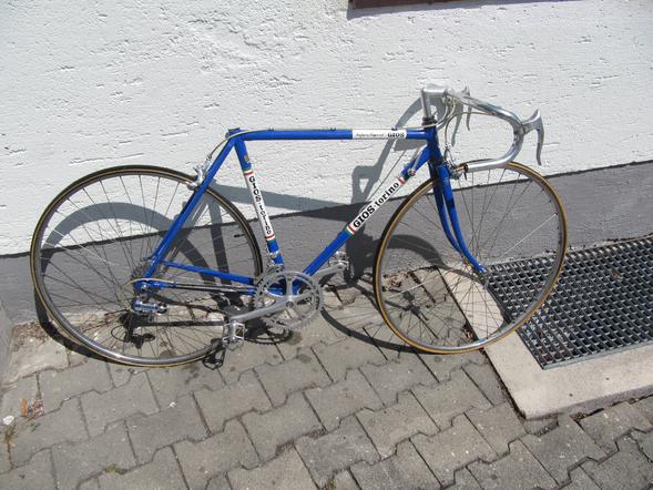 Insgesamt ein sehr hübscher und scheint's gut erhaltener Rahmen, der leider erst in ein paar Jahren Sammlerwert haben wird. Steht auf dem Oberrohr irgendeine Modellbezeichnung? Müsste eigentlich. Als Rahmen mit Gabel und Steuersatz nackt mit guten Fotos und gutem Text vlcht. 100+ in der Bucht. Schade das er so klein ist, sonst...