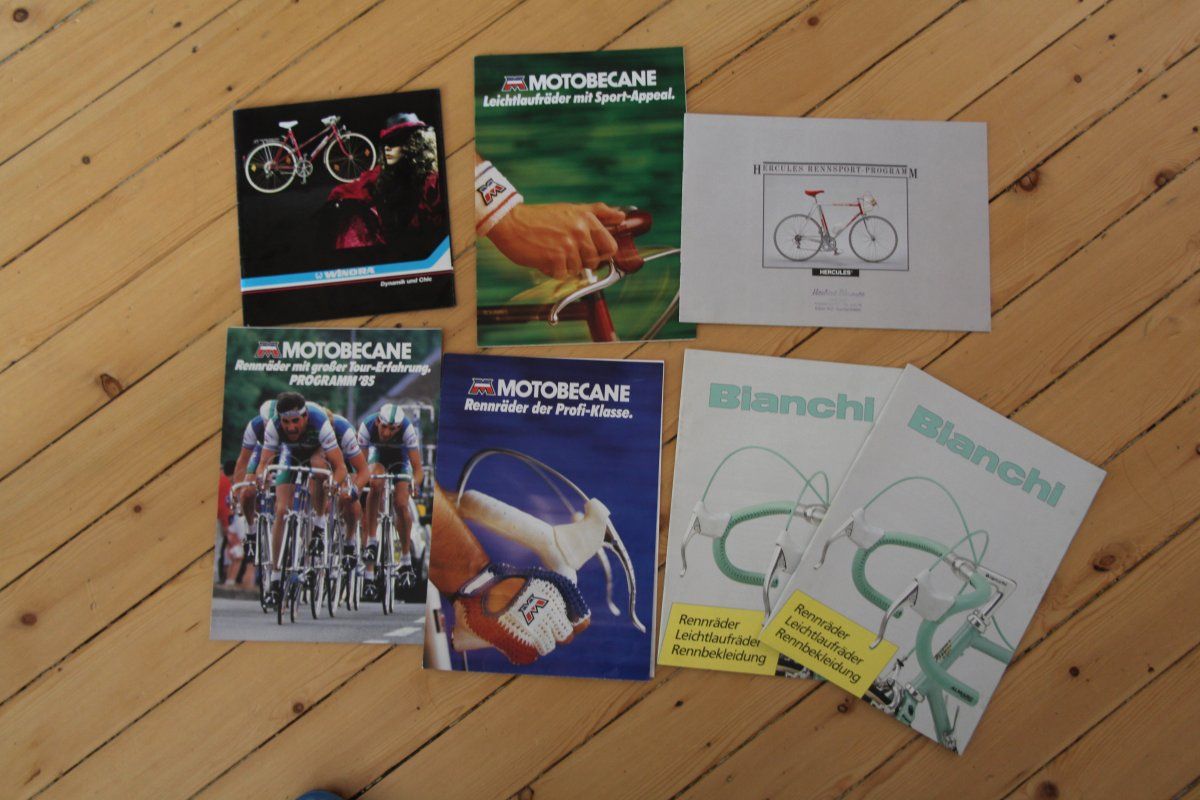 könnte einer eine Wertschätzung dieser Kataloge geben? Scheinen alle aus 87 zu sein. Die Motos sind große DinA3 Faltblätter, alle verschieden. Hercules und Winora scheinen Gesamtkataloge zu sein, Bianchi ist es definitiv. Moto und Bianchi mit Preisliste, bei Hercules muss ich noch mal schauen.