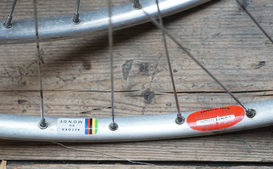 Super Champion Competition "Record du Monde", Naben: Campa Record, grader Schnellspanner, Speichen DD, Gewicht: VR 784g, HR 850g.