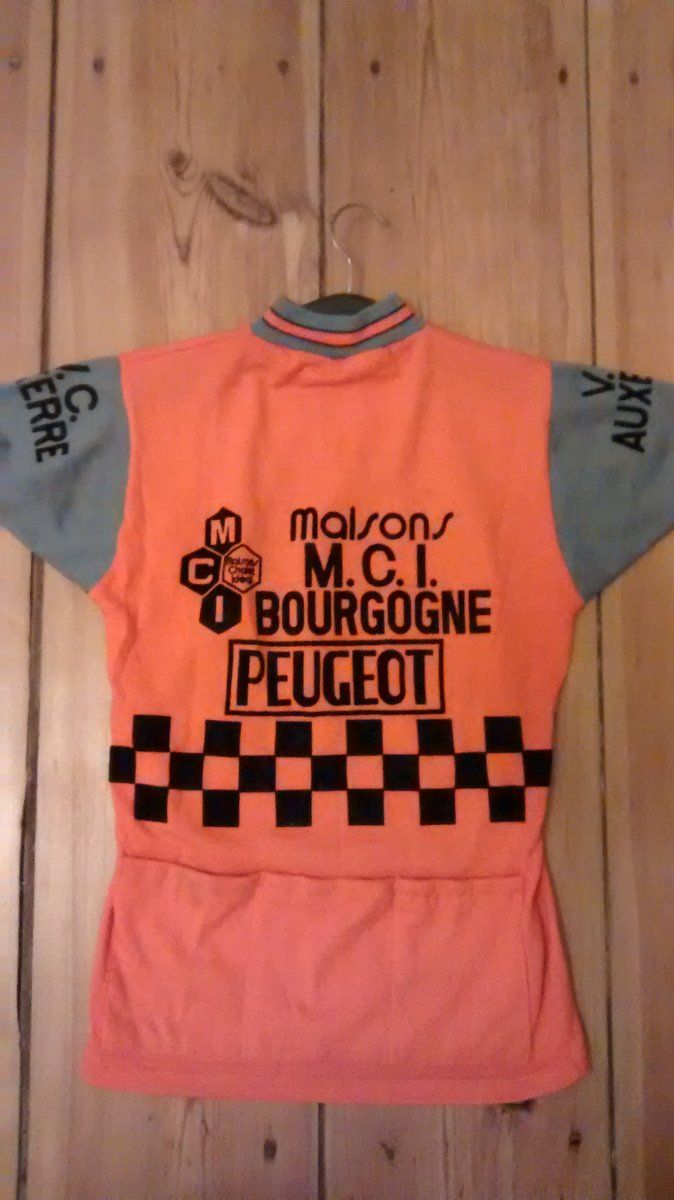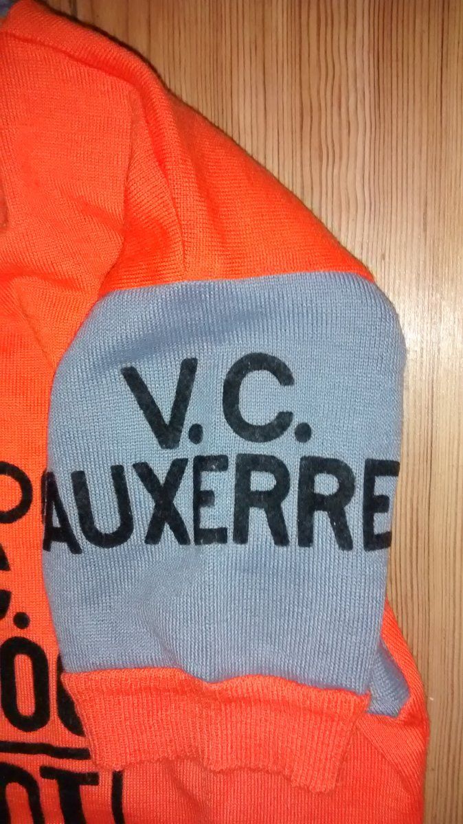 auf jeden fall ein schönes Trikot. Ich würde behaupten, dass es ein Vereinstrikot einer (kleinen) lokalen Mannschaft ist (V.C. = Velo Club) aus Auxerre in der Bourgogne ist. google sagt, dass es einen velo club auxerrois gibt, ob der mit dem VC Auxerre identisch ist, weiß ich aber nicht