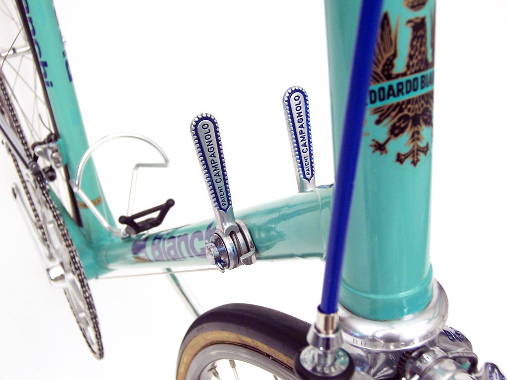 "The confusion is common as Triomphe and Victory brake calipers were both designed to mimic the old Record and Super Record of the Nuovo Record era. The result obviously was good enough to fool some of the people. toff the tell tale that these are indeed Super Record is the release mechanism for the cable. With Record and Super Record they have a round housing like you see here, with Victory and Triomphe they have a hinged cam the same as Nuovo Gran Sport."