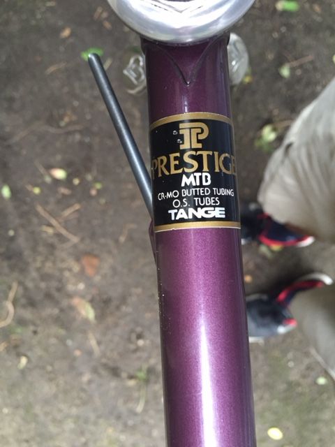 Sitz- und Unterrohr haben die typischen Spiralen...sollte also - obwohl ein "Tange Prestige MTB OS Sticker" :rolleyes: drauf ist - ein SLX Geröhr haben!? Bis auf den Lack, der eh nicht original ist?, ist der Rahmen in Top Zustand! Keine Dellen, gerade, Chrom ist top. EB ist 130mm