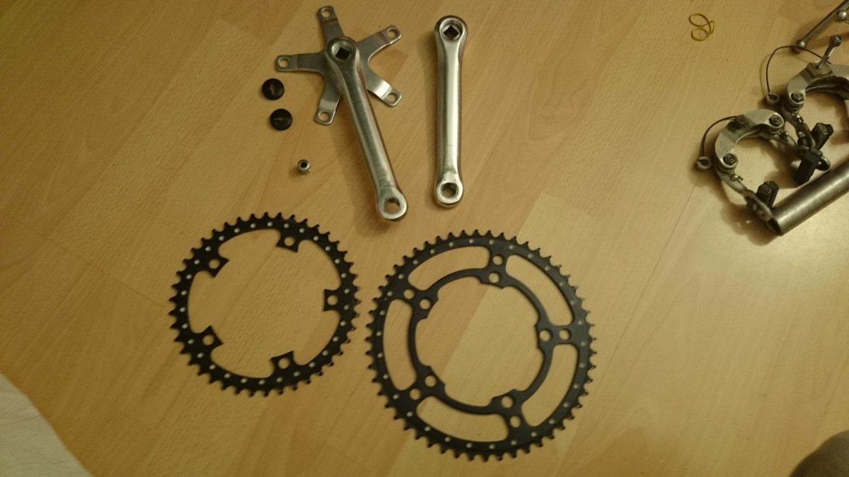 5. Solida Kurbel mit fra. Gewinde und Kettenblätter 52 und 42; Stronlight Kappen; Kurbelschrauben wären alle vorhande, nur nicht abgebildet
