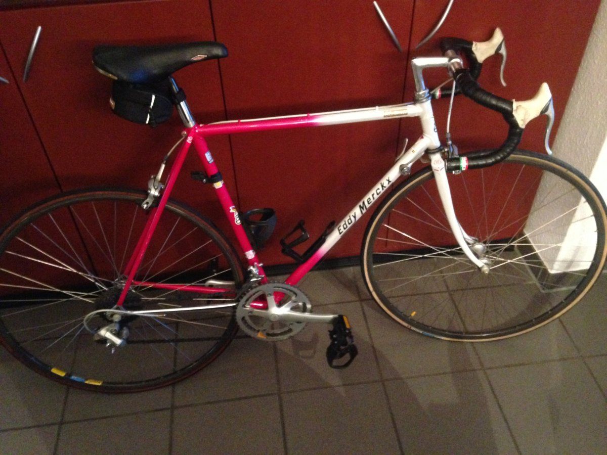 Ich bin neu in diesem Forum und hoffe dass mir jemand weiterhelfen kann. Da es mich auf unbestimmte Zeit nach Uganda zieht, trenne ich mich momentan von vielen Dingen die ich teils schweren Herzens zurücklassen muss. Unter anderem das alte Rennrad meines Vaters - ein Eddy Merckx Stada 1987. Ich möchte es verkaufen - allerdings kann ich nicht einschätzen wo der Wert dieses Rads liegt und ob es überhaupt einen Markt für dieses gibt. Es wurde seit 10 Jahren nicht gefahren, stand durchgehend trocken und scheint sich in einem sehr guten Zustand zu befinden.