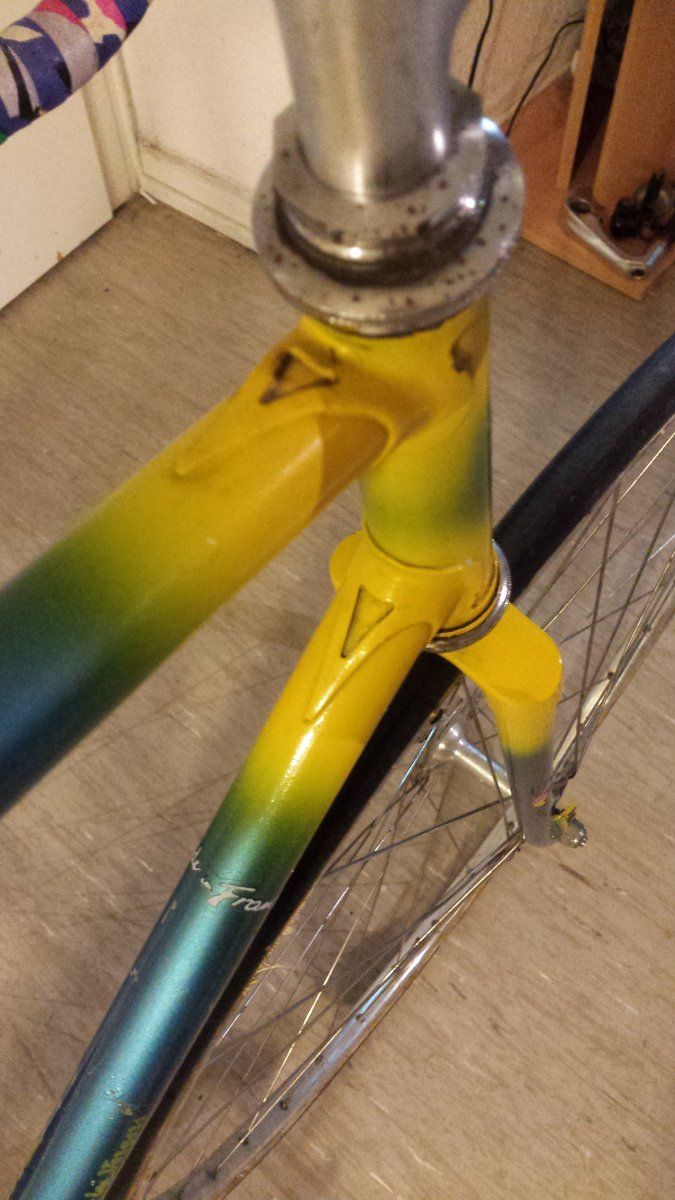 Ist ein gitane und wird genau so wieder erstrahlenAlso meines Wissens nach hat Peugeot selbst keine Bahnrahmen gebaut. Was es sonst sein könnte, weiß ich aber auch nicht. Neu lackieren würde ich nicht, mir gefällt die Farbkombi auch. Schöner Rahmen!![]()
