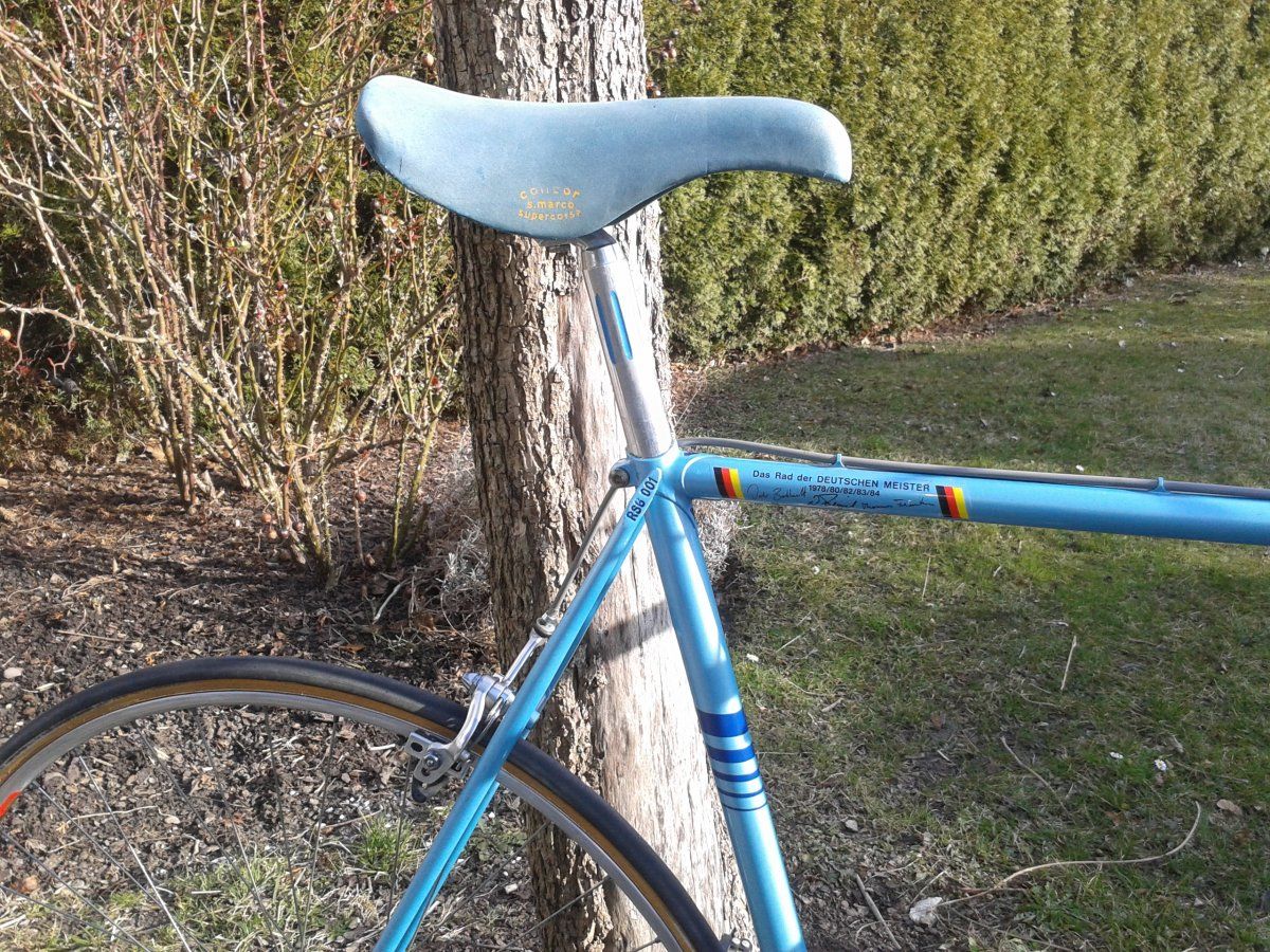 Da ist auch keine draufPortacategna ausfallende spricht für mitte/ende 70er / anfang 80er. Die Gravur (?) auf der bremsbrücke hinten ist nicht zu erkennen..