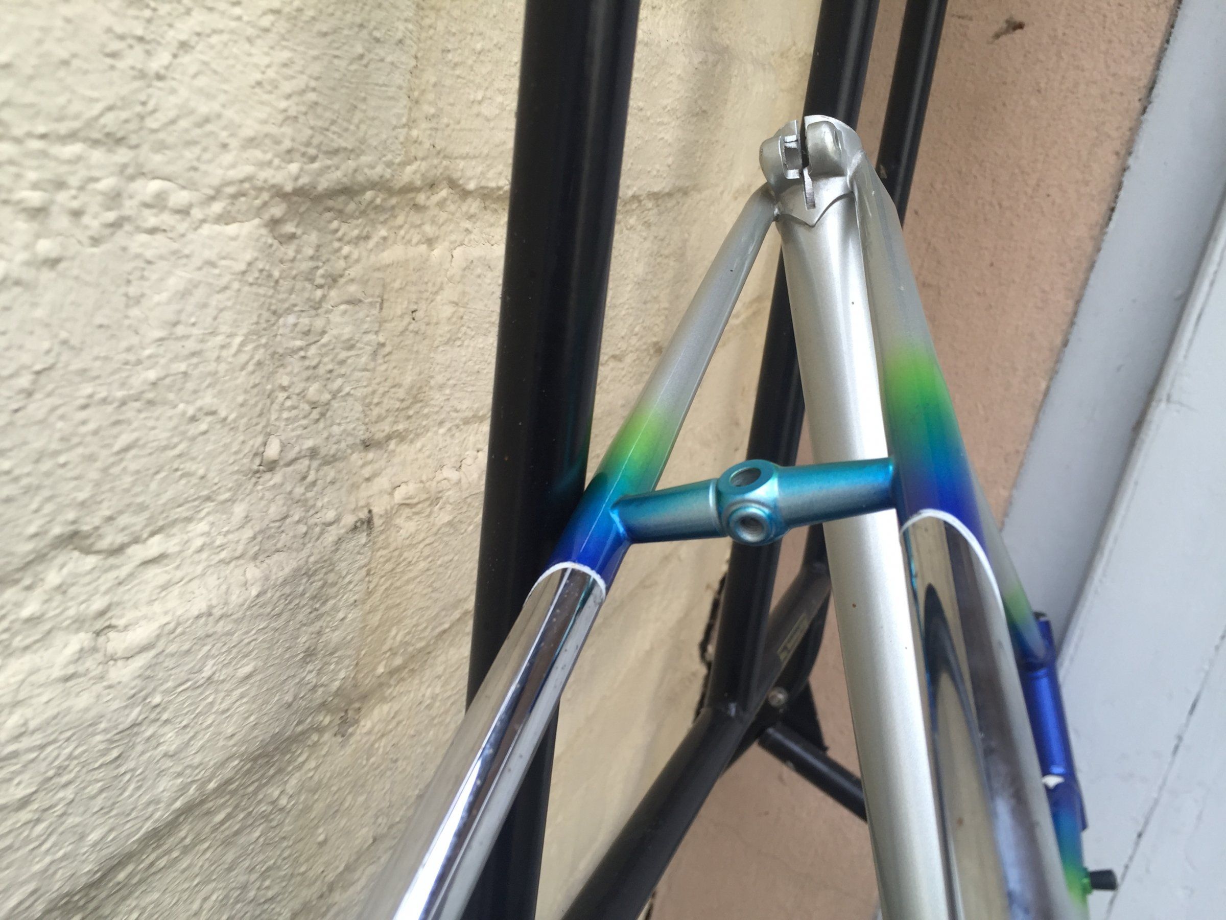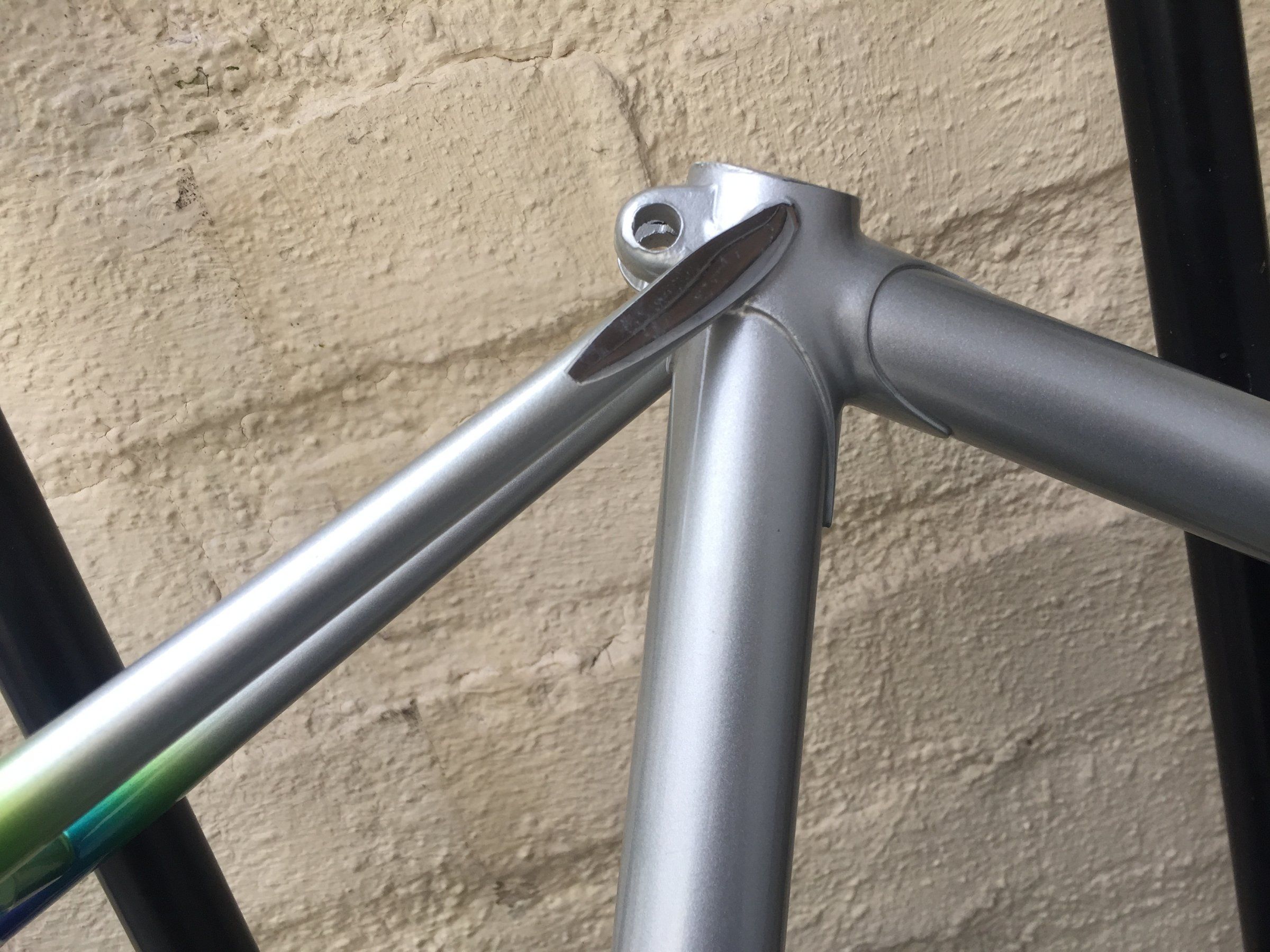 Lüders profi. Kleine maenner/maedchen-grosse. Unisex-farbe. Ausgezeichnet verarbeitet. Lackmacken vom stehen, aber kein rost. Sattelrohr leichte dellen vonnem klemmständer. Schön leicht: rahmen 531c 1860g, gabel 531 629g, summa summarum: 2489g