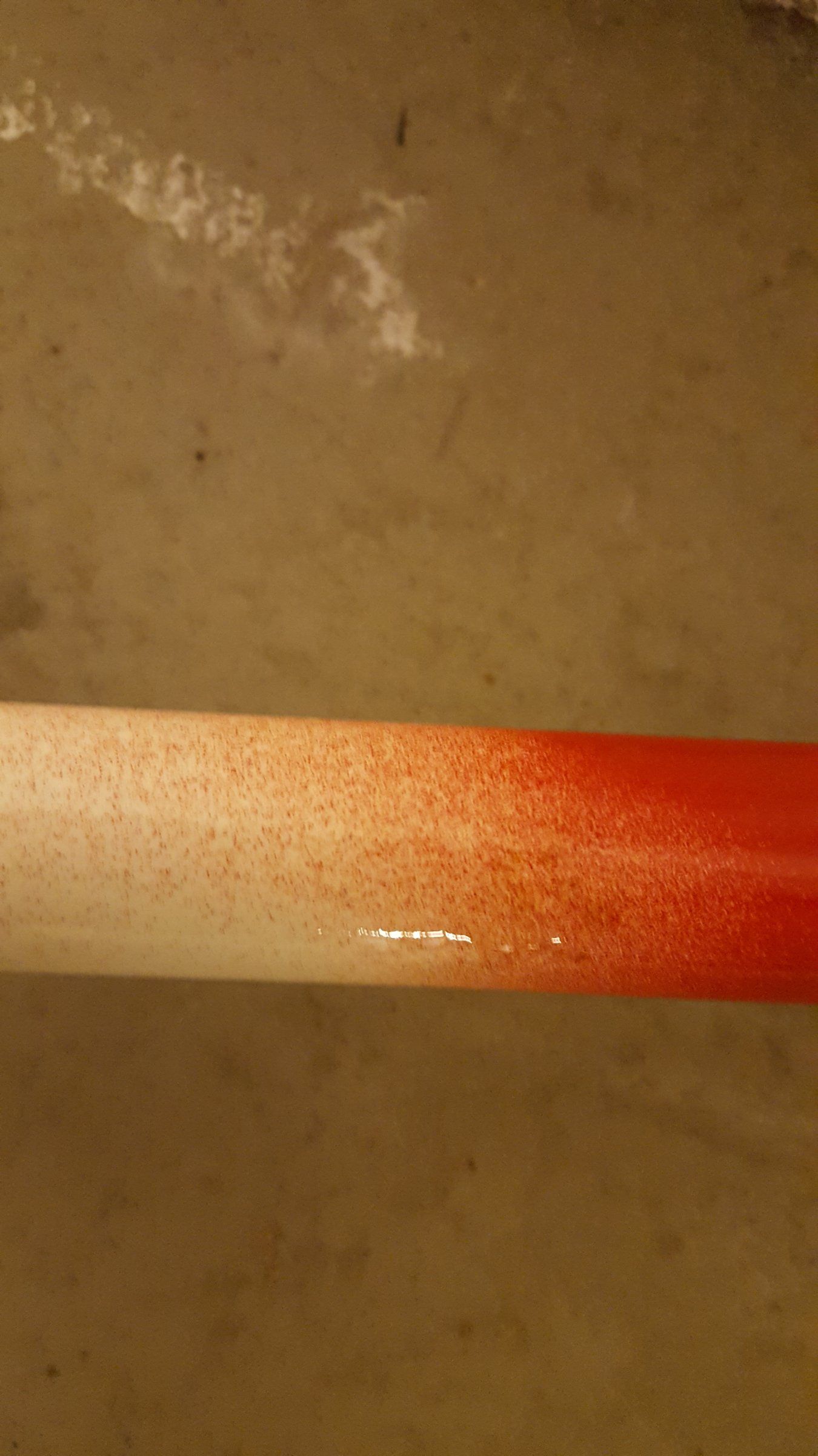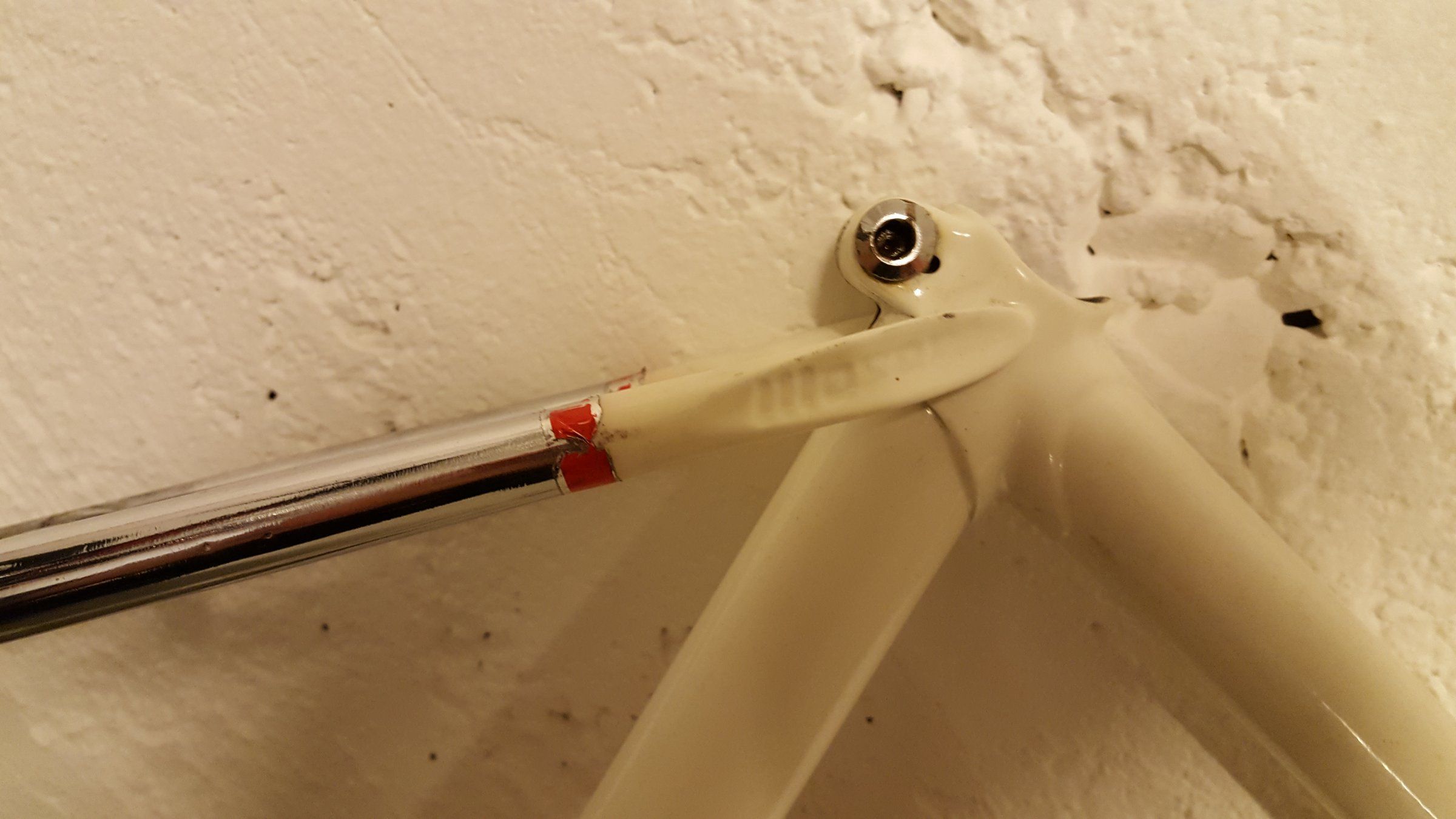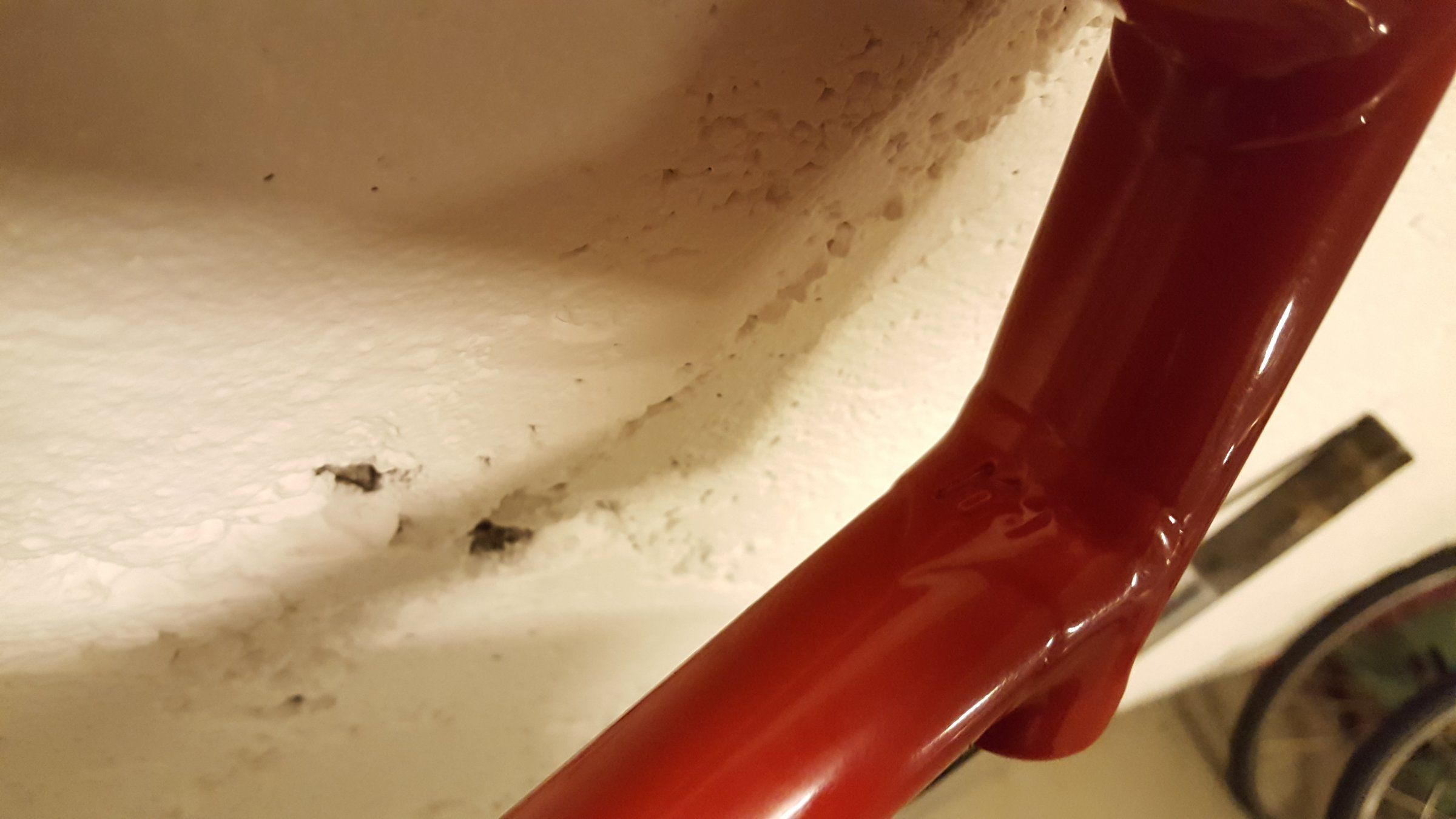 der rote lack am steuerrohrbereich ist nachlackiert, gepammt - wenn man die dicke in betracht zieht - siehe muffenübergänge