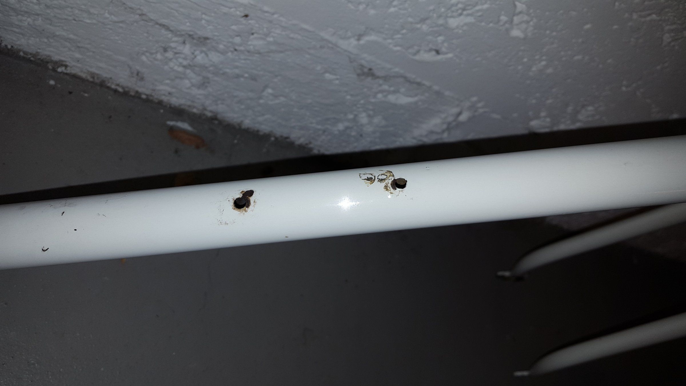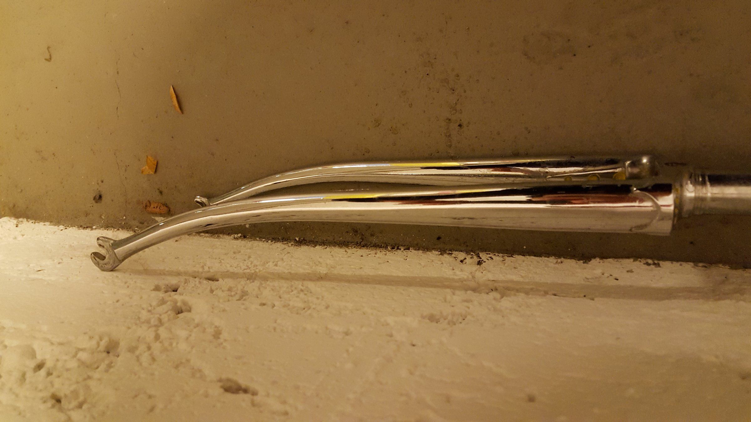 Und jetzt das traurige: der Vorbesitzer hatte anscheinend das dringende Bedürfnis einen Flaschenhalter zu montieren und hat 2 Löcher in das Unterrohr gebohrt. Das fiel mir leider erst beim demontieren auf, sollte aber nicht weiter tragisch sein?!?! Ein Rahmenbauer kann ja bestimmt 2 Gewinde reinlöten..