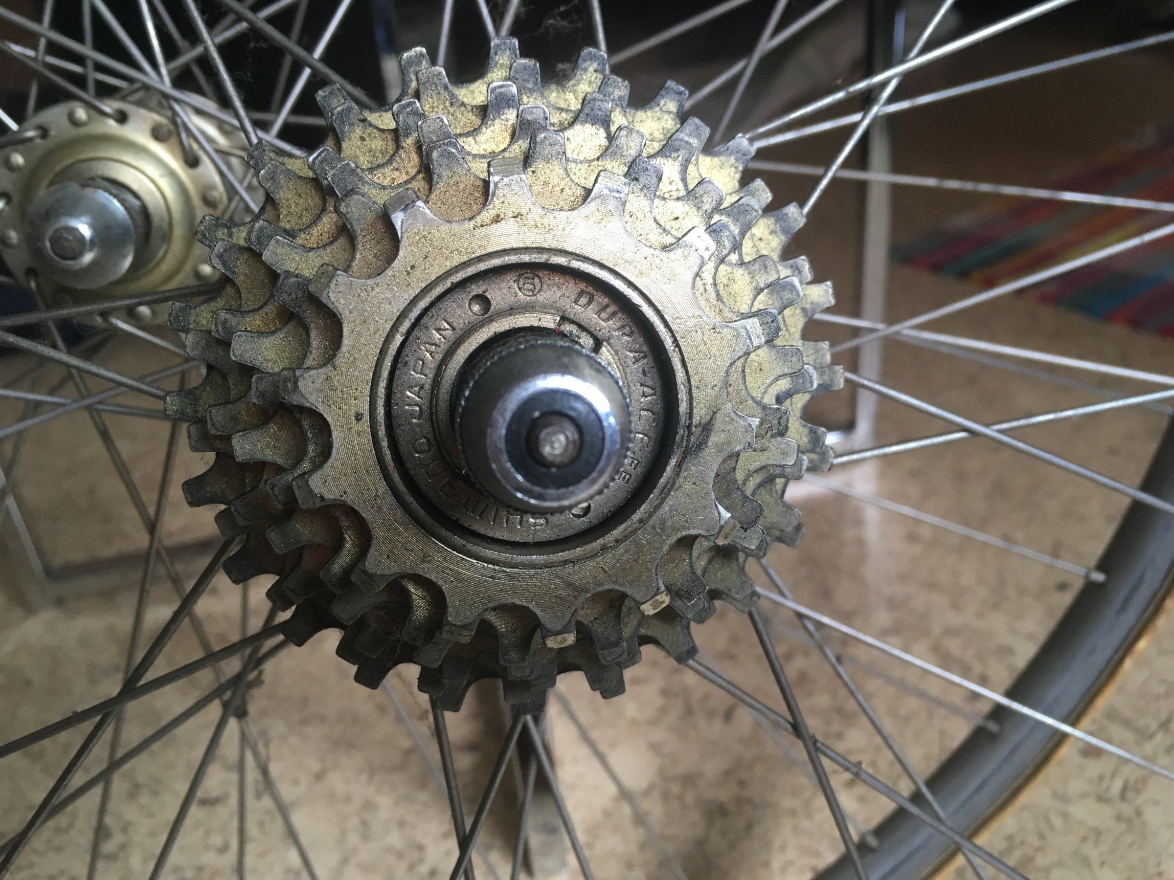 Es handelt sich um ein Bianchi Rekord 935 mit kompletter Campagnolo Athena Gruppe und Columbus Cromor Rahmen (und Gabel).