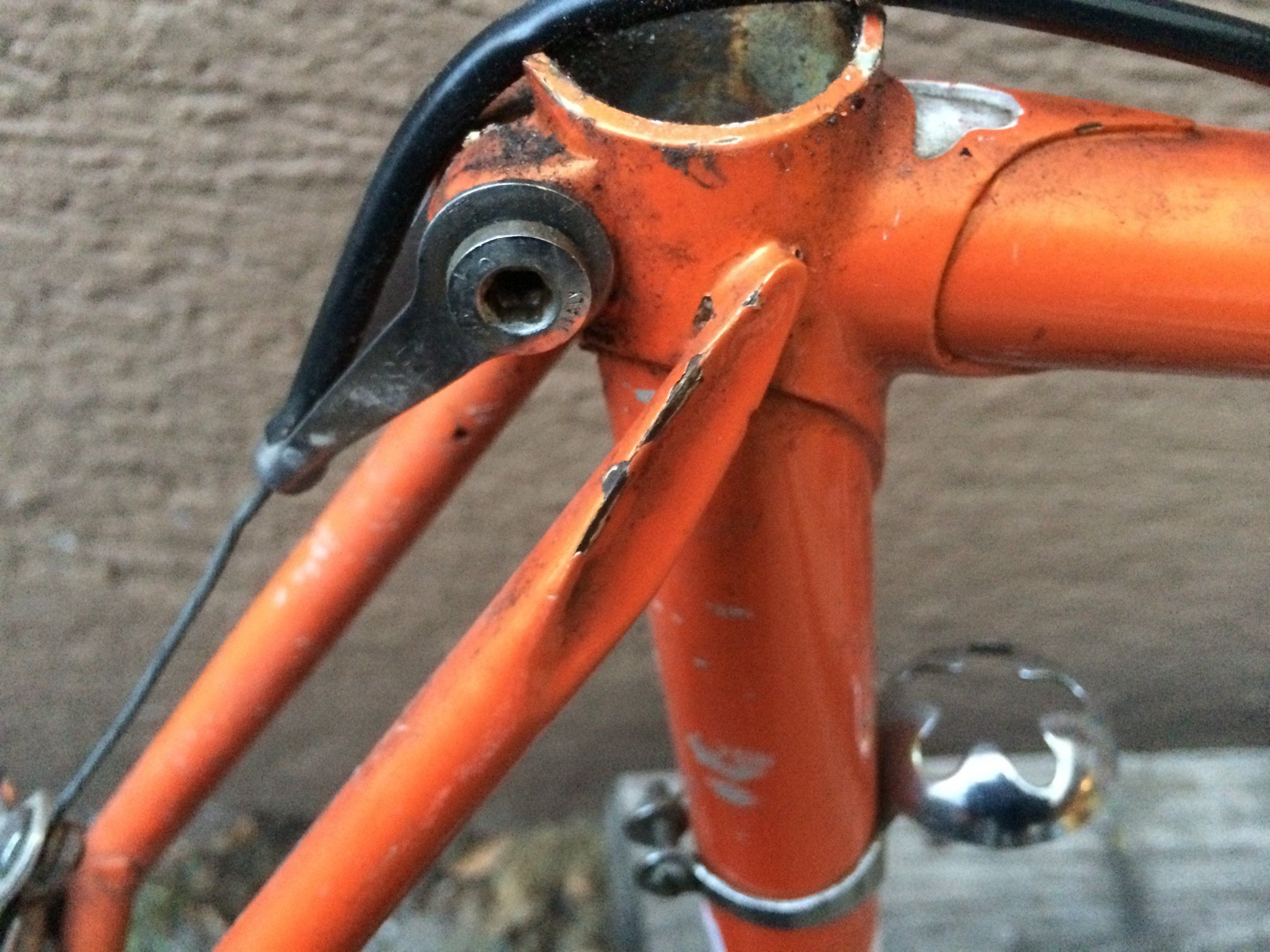 Laut Vorbesitzer ist das Rad im "Originalzustand", würde ich aber bei einigen Teilen anzweifeln. Vor allem die gestanzten Ausfallenden an der Gabel inkl. Schutzblechbefestigung passen für mich nicht ganz zum (aus meiner Sicht) wertigen Rahmen.