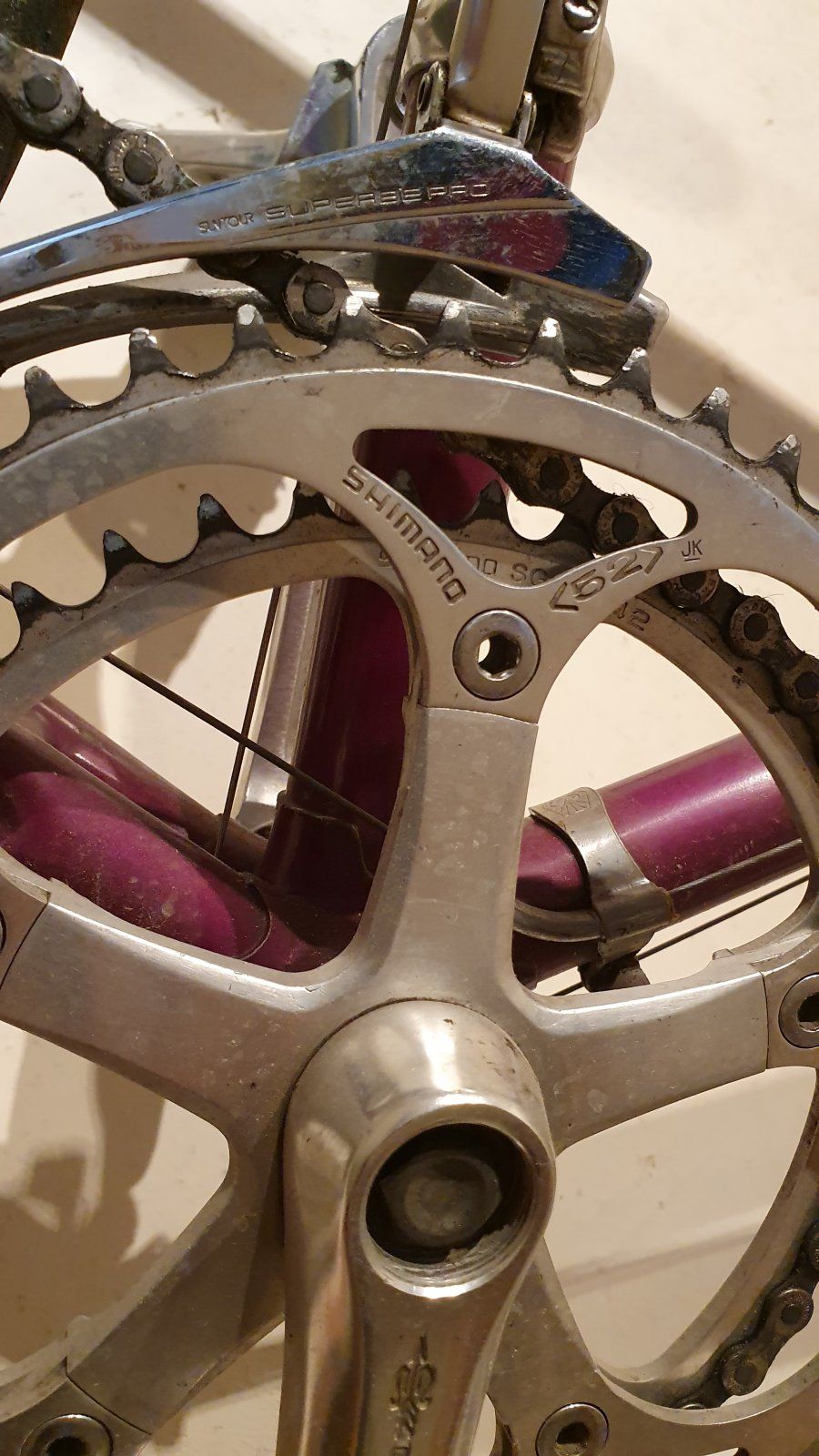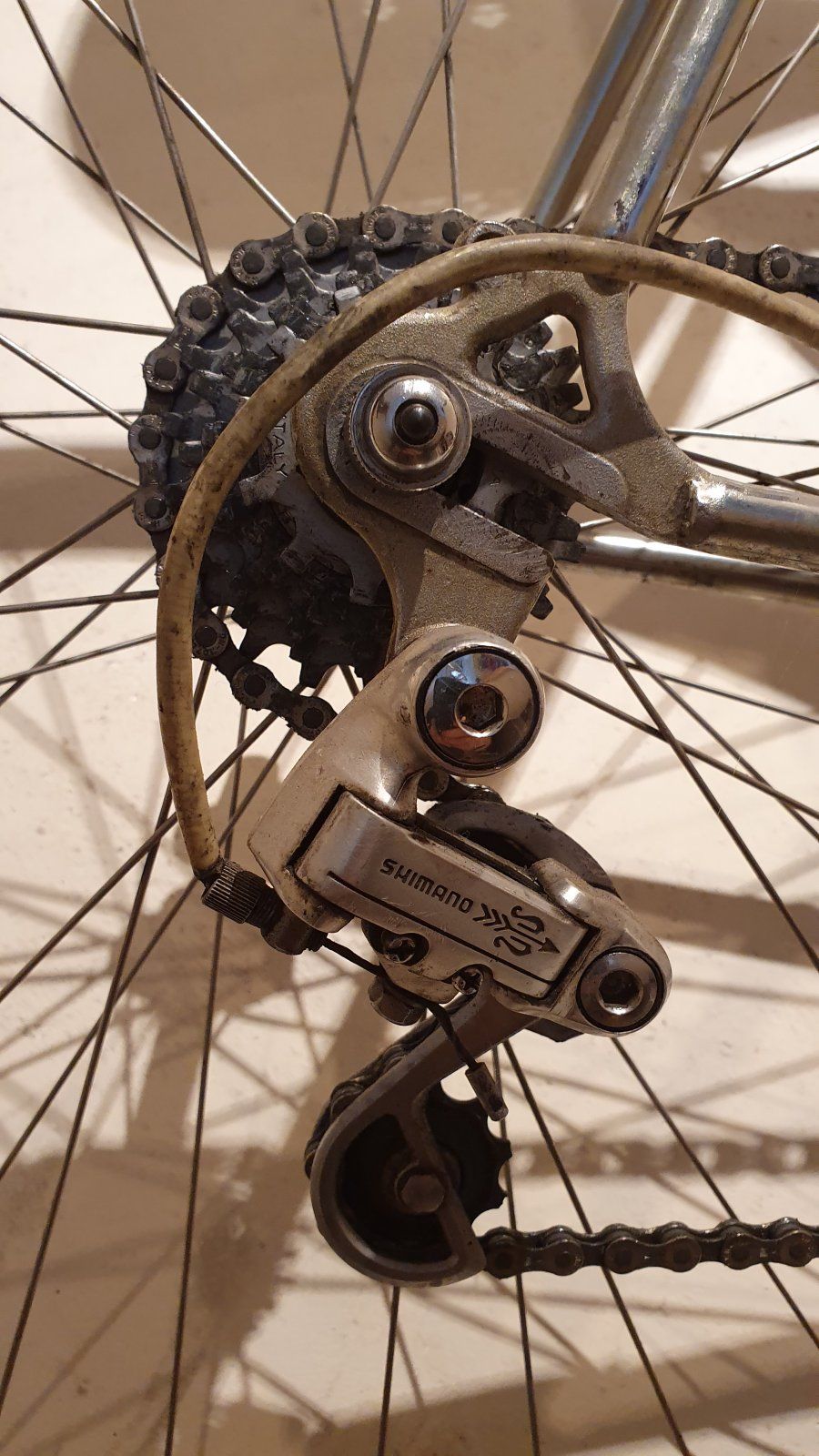 Bremsen und Bremsgriffe Modolo, Hoods überraschend gut, Kurbel, Vorbau und Stütze SR, Schaltung Suntour SVX.