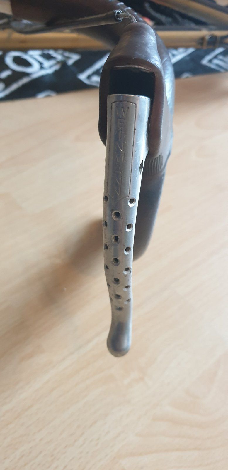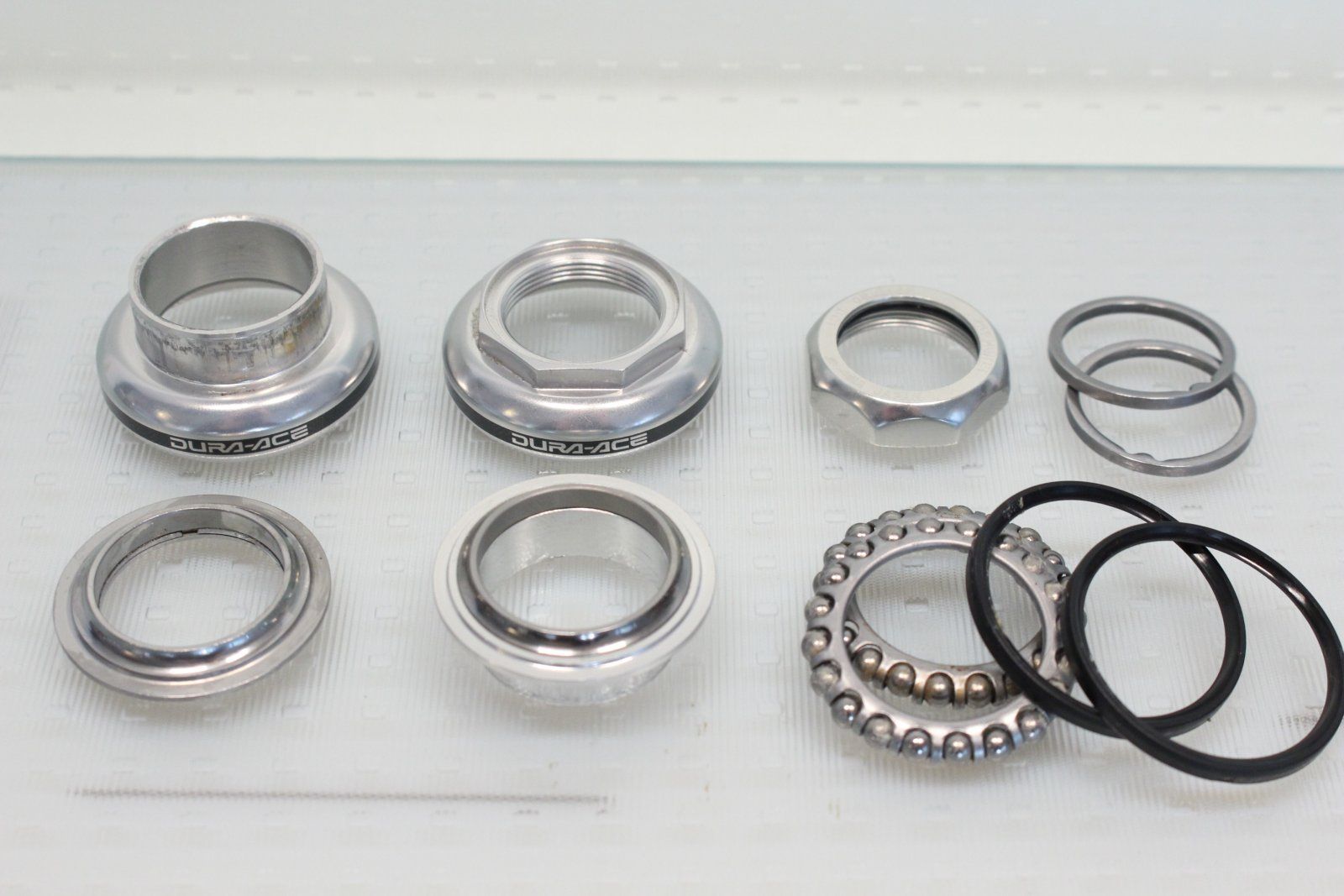 Early Record bottom bracket using 3/16" balls instead of the more typical 1/4" balls. The races are pressed onto the spindle rather than machined directly on the spindle itself. Neither the cups or spindle are interchangeable with other bottom bracket components designed for 1/4" balls. Spindles are variously lettered for spindle width and BB shell. 'X 3' lettered on the spindle is for a triple <