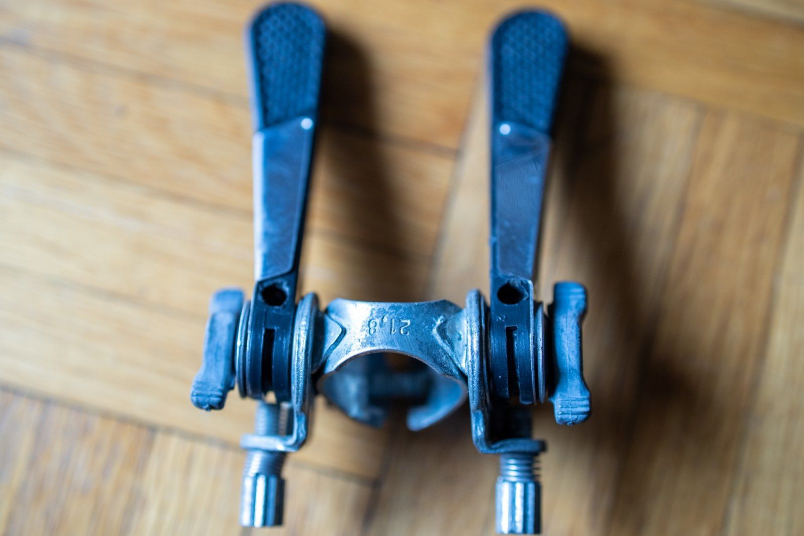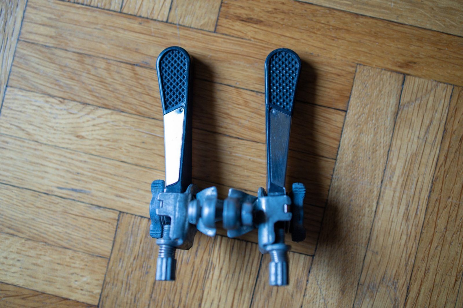 Ansonsten Schalthebel mit Vorbau Schelle, nix dran und eine noch schöne Simplex Zuganschlag Schelle fürs Unterrohr.