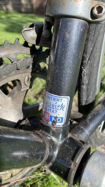 Delle im Steuerrohr, Gabel getauscht, „neu“ lackiert. Rahmen gerade.