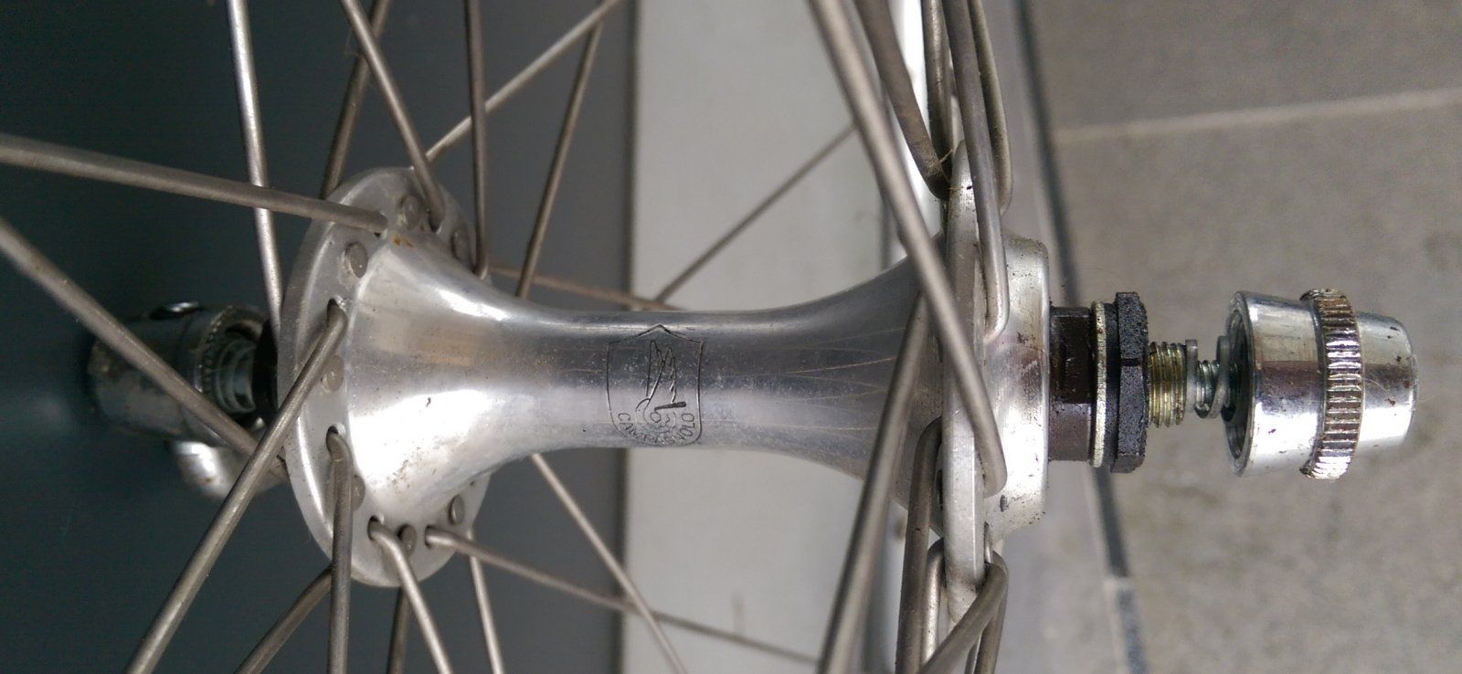 Mavic Open Pro SUP 36L mit Campagnolo Nabe (Wing Logo) inkl. SSP - diese läuft schön rund und ruckelfrei, die Bremsflanken sehen sehr wenig bebremst aus und ich kann keine Schläge erkennen.
