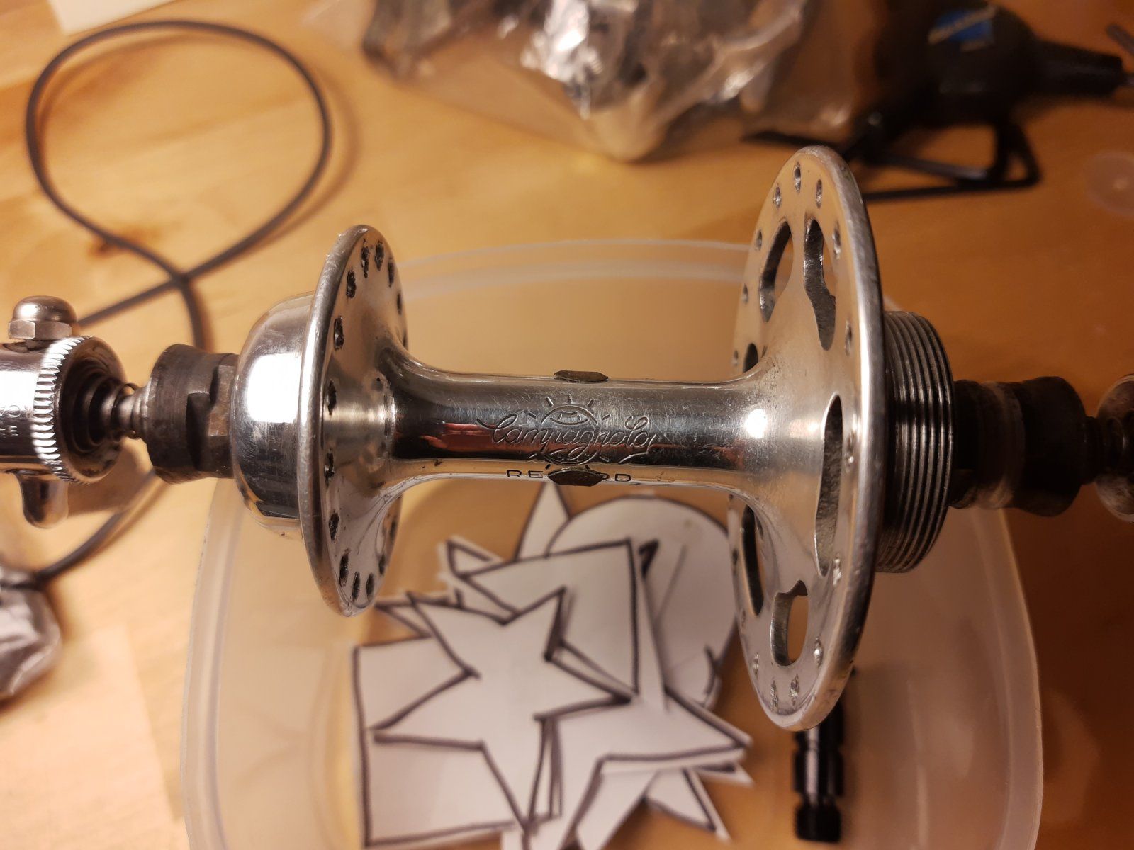 Pelissier Vorderradnabe. Ist der Schnellspanner passend? Gibts dafür Interessenten? Scheint schon was älter zu sein (mehrmals eingespeicht?) Kurz mit Autosol rübergegangen (hängt noch bissi in den Speichenlöchern).