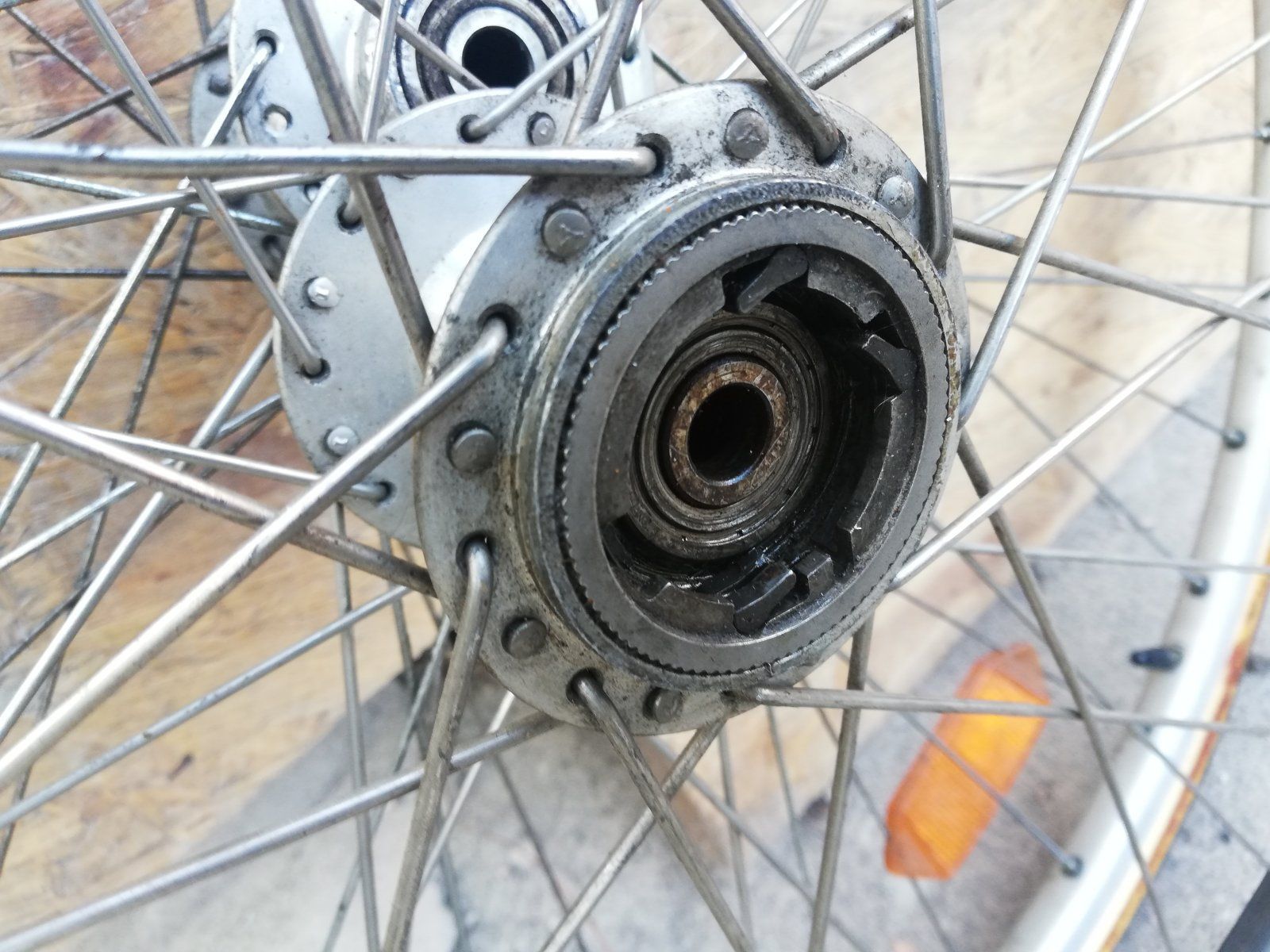 Ich mag die Konstruktionsidee auch sehr. Z.B. , dass man bei einem Speichenbruch auf der Zahnkranzseite die Speiche sozusagen am Strassenrand ersetzen konnte. Nachteil: da aufgrund der Konstruktion die Speichen auf der Zahnkranzseite steiler standen als sonst üblich, musste man davon wohl auch häufiger Gebrauch machen. Außerdem eine leidige Lagerschwäche bei den Naben für Straßenräder auf der Zahnkranzseite, wo - wahrscheinlich wg. konstruktionsbedingter Platzprobleme - die Kugeln kleiner ausfallen mussten. Bei Helicomatic-Naben für MTBs ist letzteres nicht der Fall - dort haben die Lagerkugeln auf der Zahnkranzseite dieselbe Größe wie die gegenüberliegenden. Meine Frau fährt ein Gitane Vanoise aus Anfang der 80er mit so einer Helicomatic-Nabe. Ist problemlos.Danke für die Bilder. Eine sehr schlaue Konstruktion. Auch wenn es eine Schraubkranznabe ist, so liegt, wie bei den Kassettennaben, das Kugellager näher am Rahmen und die Achse wird nicht so stark belastet. Weniger als 14 Zähne scheinen aber nicht möglich zu sein.
