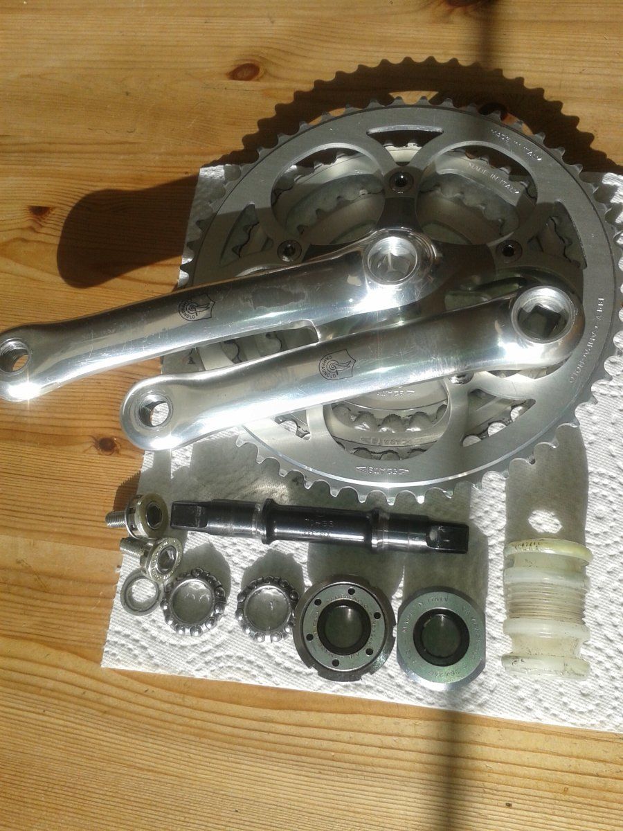 Wäre interessant zu Wissen was das für eine Kurbel ist. Campagnolo hat sich in den letzten 70 Jahren so einiges Ausgedacht.Moin