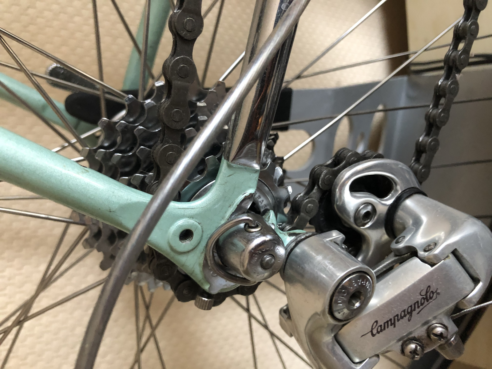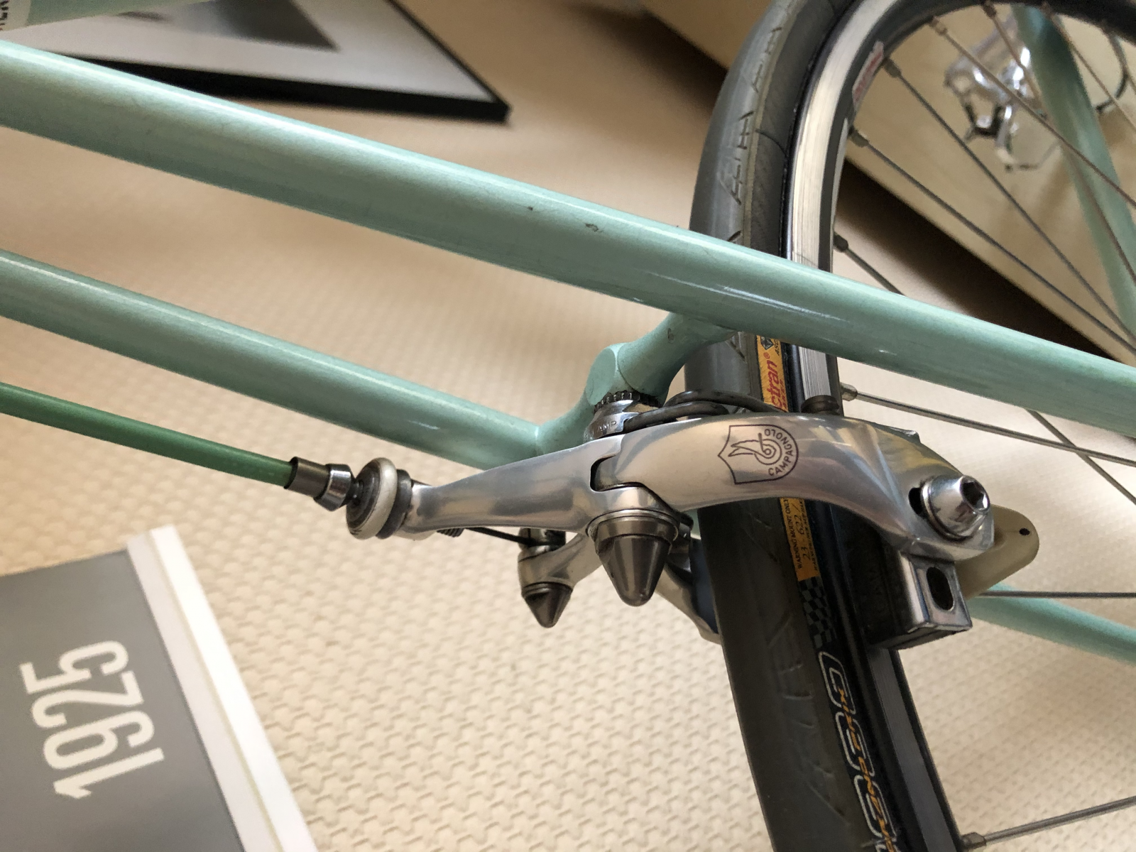 Ich hatte auch schon überlegt eine Campagnolo Ausstattung zu verbauen. Aber die Felgen wollte ich eigentlich dran lassen und ich habe keine Lust umzuspeichen.![]()