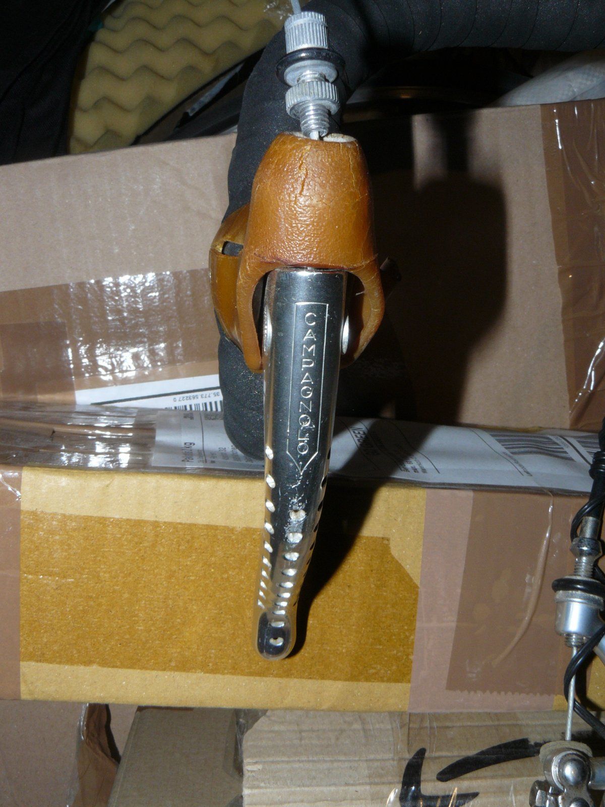 Was sind das für Bremshebel, Super Record? Die Einstellschraube gehört nicht dazu, war aber so angebaut, Gewinde haben die Bremshebel (natürlich) nicht.