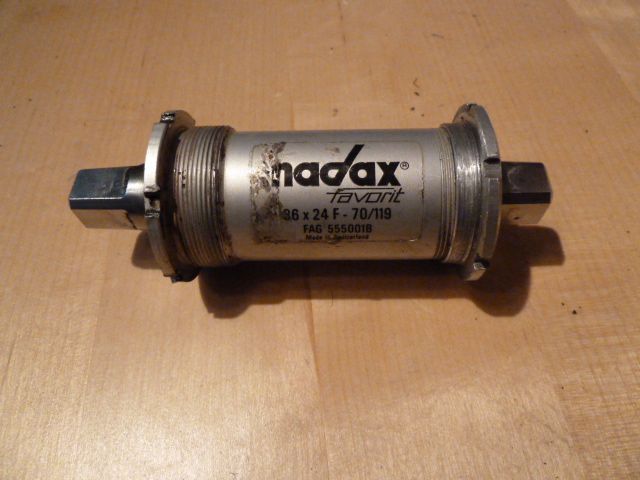 Mein Kollege hat sich Mitte der 80er in BS vom Müsing sein Gios damit aufbauen lassen. Er schwärmt heute noch von diesem Lager und das es den Preis von 150 DM wert sei. Das aber wohl auch nur weil zu der Zeit offene Lager noch die Regel waren. Problem wenn du es wieder montieren möchtest brauchst du eine neue Kontermutter, die Patrone wird eingeschraubt und dann die Mutter angezogen. Die Mutter hat aber nur ein Innengewinde mit dem es auf der Patrone bewegt wird, außen ist nur ein Kegel. Dieser Kegel würgt sich dann in das Gewinde des Tretlagergehäuses. Wenn es 1x montiert ist, ist es mit dem Rahmen verheiratet, da nur nort der Gewindeanfang richtig passt. Hier habe ich solche Lager für um die 12-15€ über den Tisch gehen sehen, in der Bucht für 25-30€ , die waren dann zwar montiert aber sonst ok. Ich habe auch schon mal ein demontiertes als Dankeschön für das Verleihen meinen Nadax-Werkzeugs bekommen. Ich habe mich noch nicht damit befasst, mir ist aber so als könne man die Patronen zerlegen und muß dann die Wälzlager tauschen, wie bei Naben mit sog. Industrielagern.Aus dem Fundus meines Onkels ist dieses Favorit Innenlager, es ist sehr leichtgängig.
