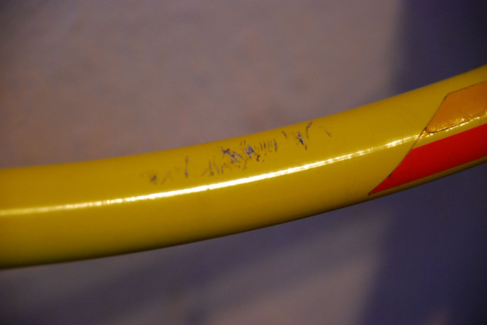 Zum Rahmen muss ich noch sagen, dass bei den Schalthebeln ein Anlötteil abgeflext wurde und am Oberrohr an einer Stelle viele Kratzer sind.