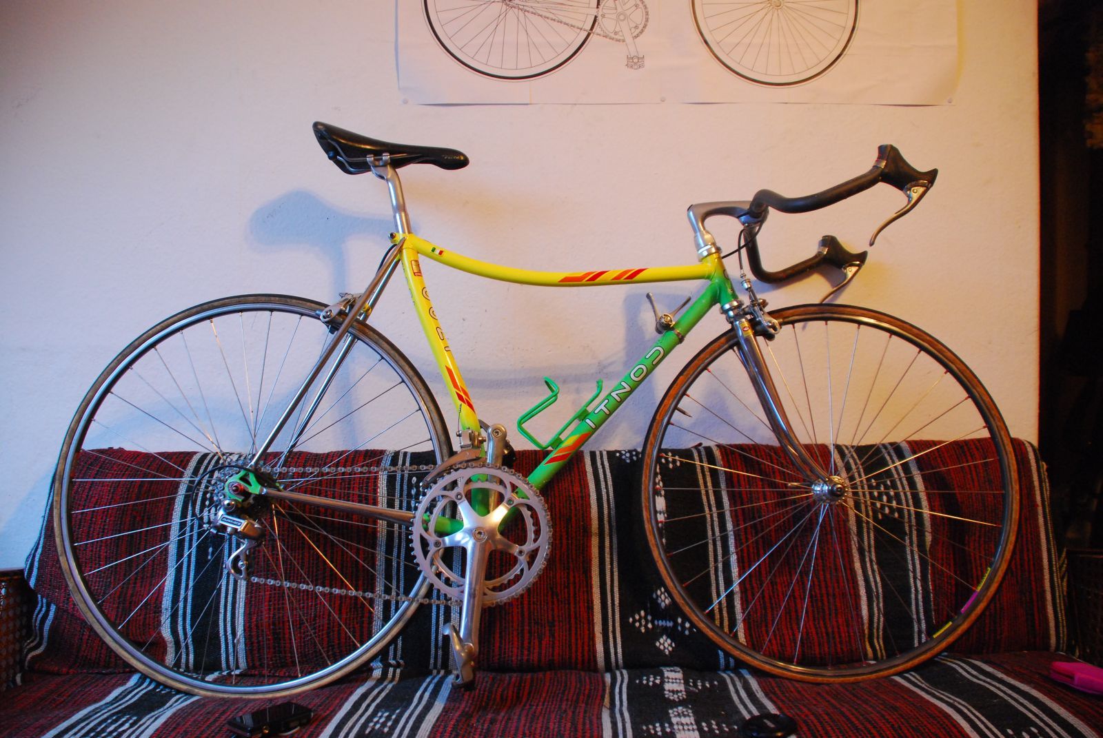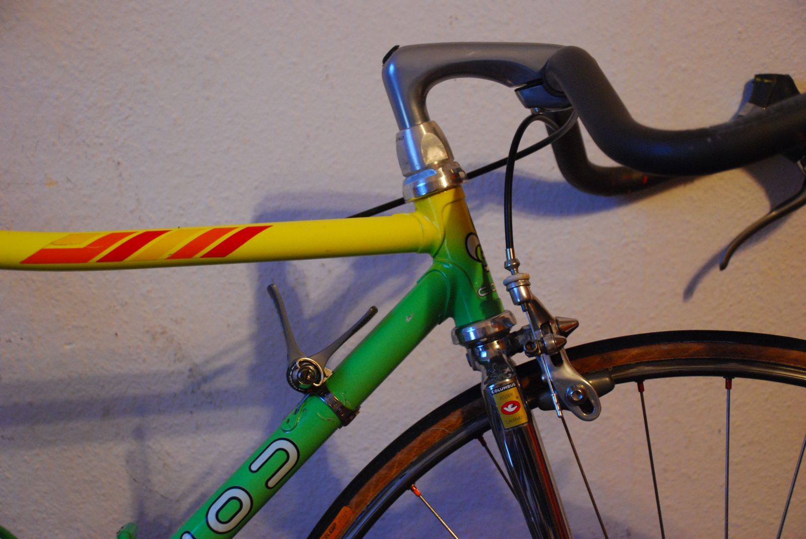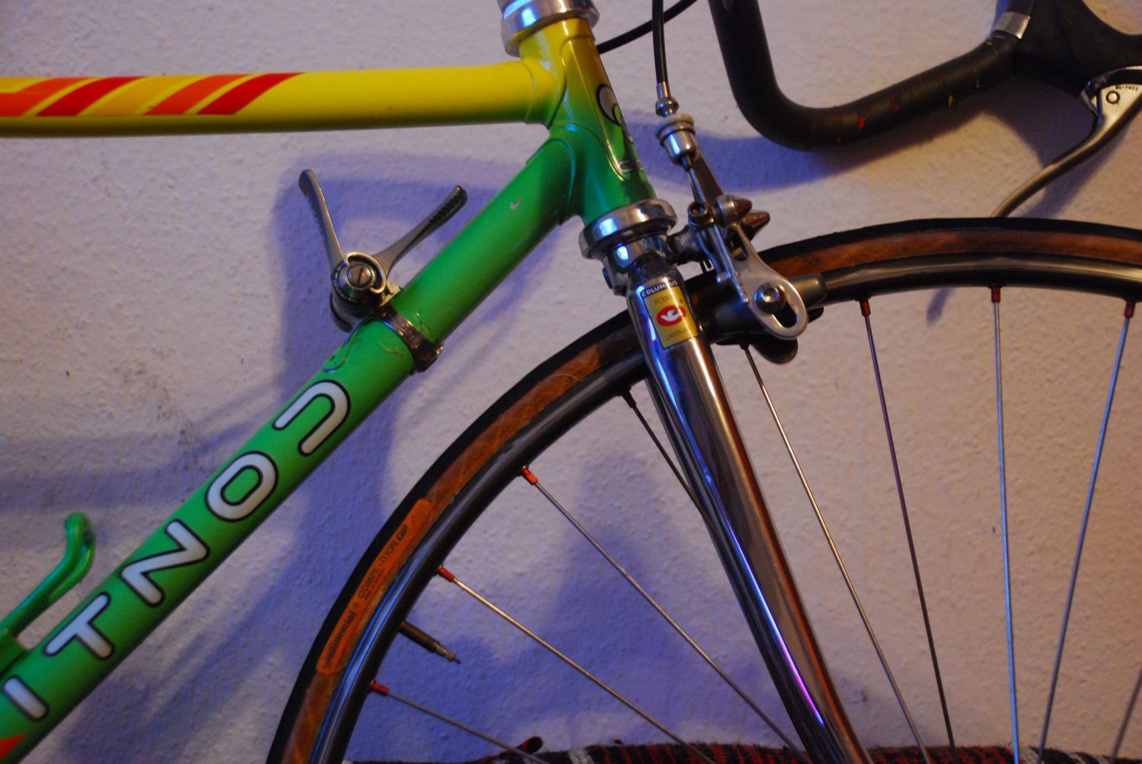 Jetzt ist die Frage, was wäre denn der Rahmen mit Steuersatz,Dura Ace Schalthebel, Innenlager(EDCO Competition) und 26" Vorderrad(Record Nabe GP4 Felge, radial mit rot eloxierten Nippeln) wert?