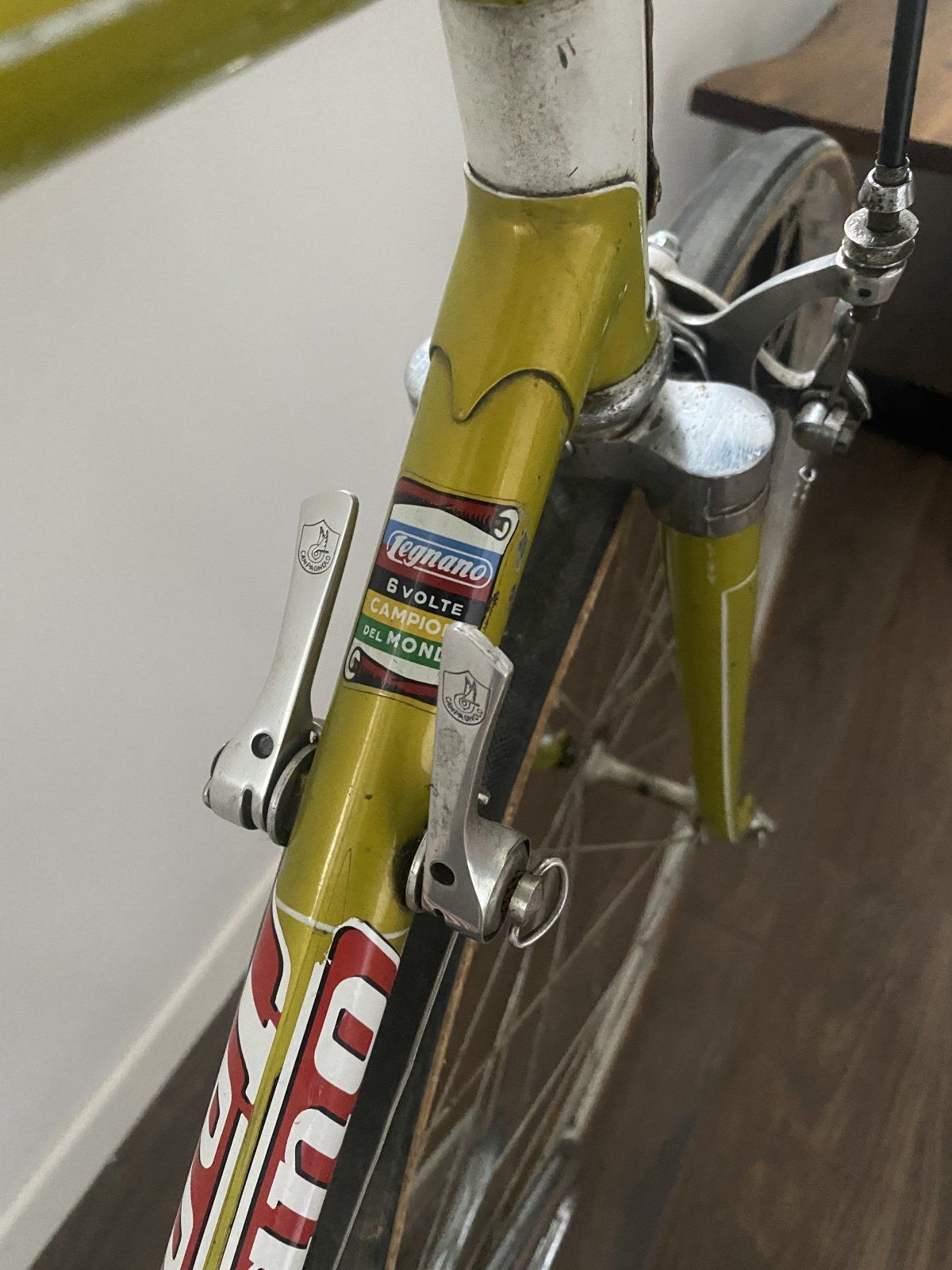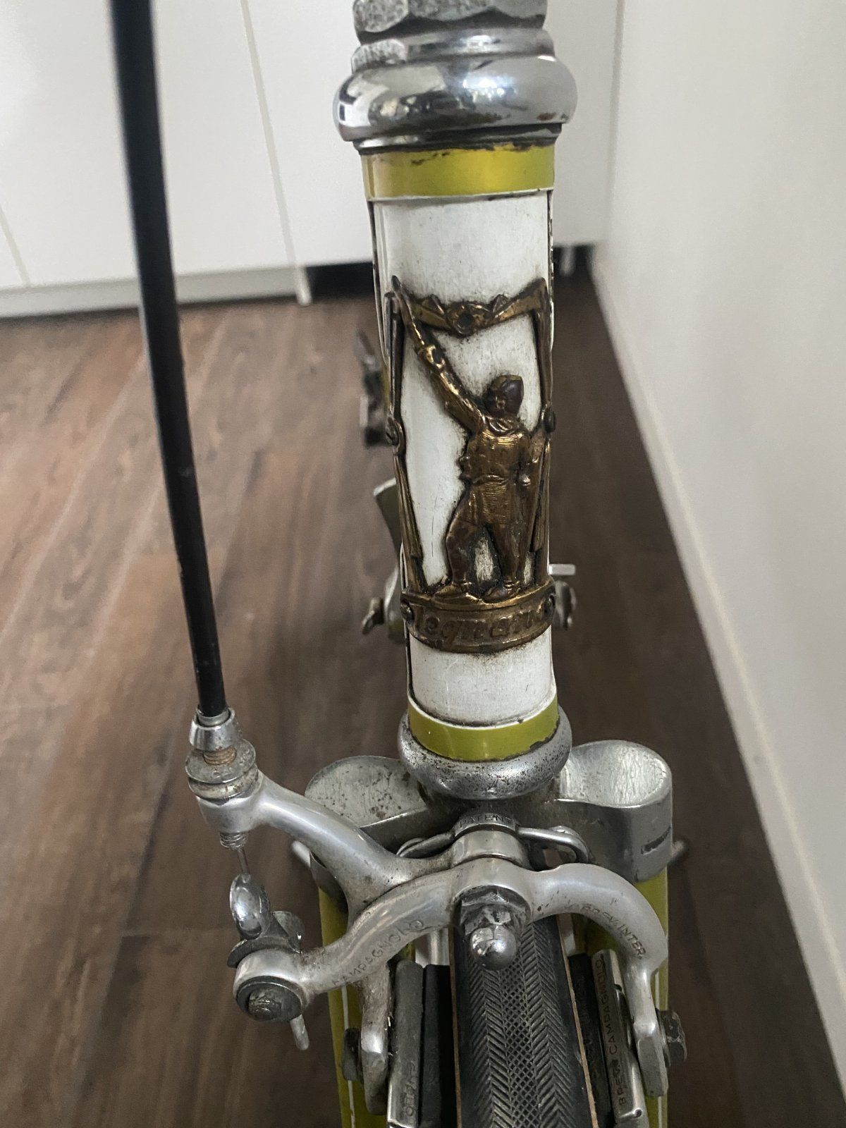 Eher gestern bei meinem Chef im Laden an einem verbastelten Legnano andere Laufräder eingebaut, die hatte ich schon die Tage eingespeicht, leider nur ein Bild von vorher, mit dem Rad ist der Vater des Kunden in den 60er von Italien nach Deutschland gefahren, als Gastarbeiter wie es damals so schön hieß.