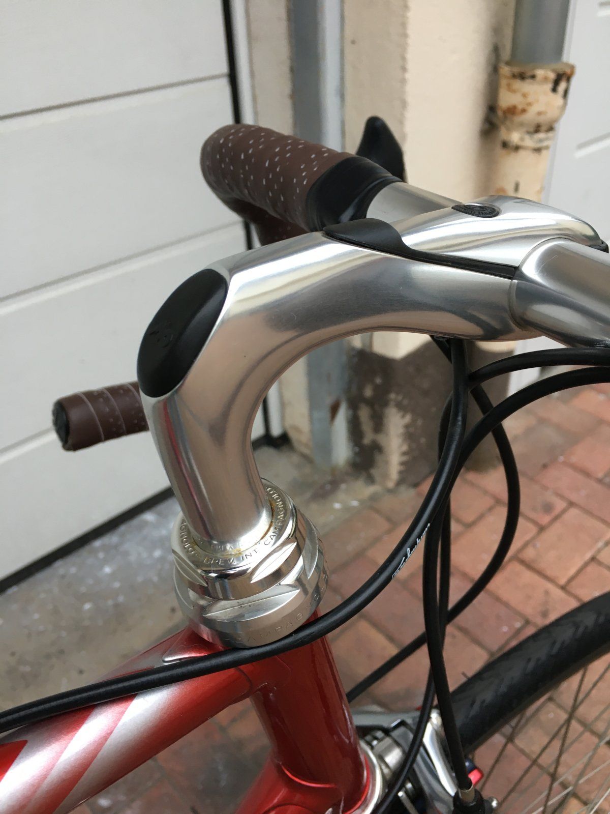 Zum Bike selbst , es steht ganz gut dar , die Farbe vom Lack ist noch schön knackig und bis auf ein paar Stellen am Oberrohr auch ohne große Beschädigung ( s. Bilder ). Verbaut ist die Sachs New Success auch im guten Zustand. Die Chrome Gabel ist leider im schlechteren Zustand , dunkle Stellen , Chips ! Die Laufräder Sachs/Omega-Campa im guten Zustand.