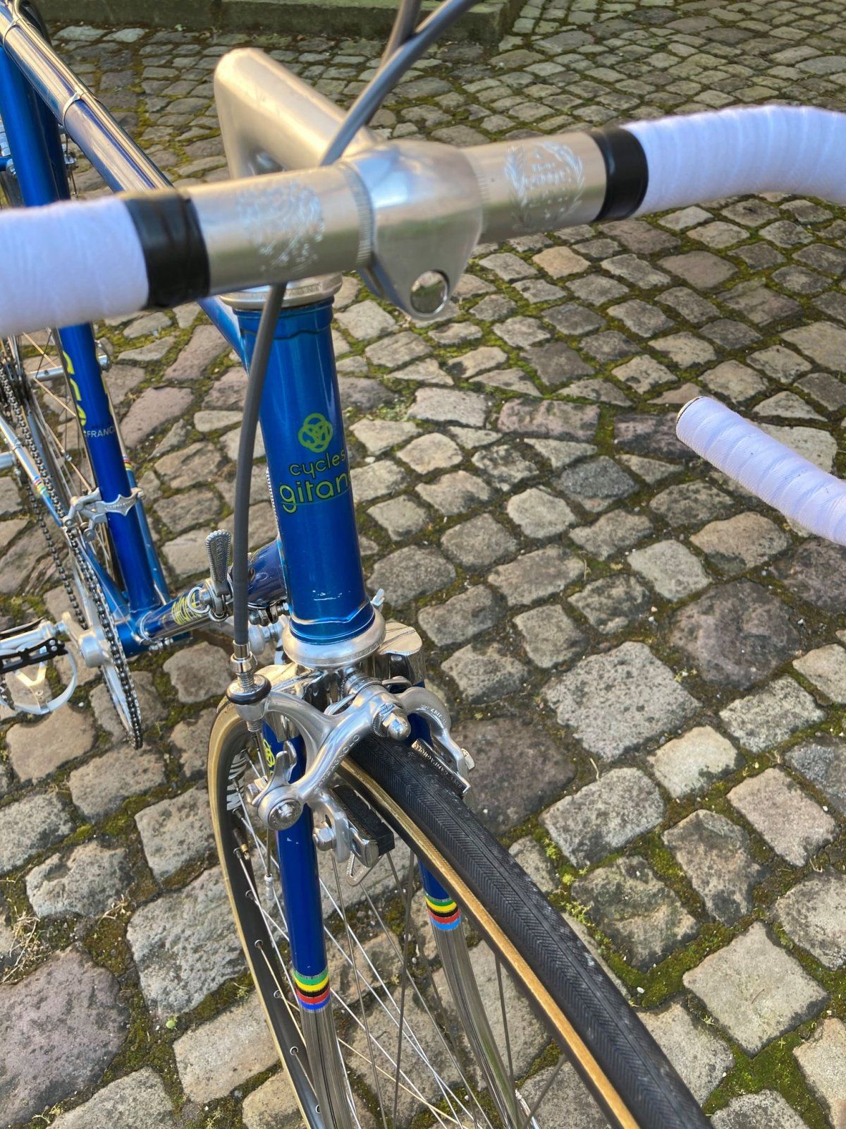 Der Rahmen sollte komplett aus Reynolds 531 Rohr gemacht sein was du an dem "Main Fait" Aufkleber auf dem Unterrohr erkennst. Bei günstigeren Modellen war das, wenn überhaupt oft nur bei den drei Hauptrohren der Fall, weswegen die Rahmen/Räder dann etwas schwerer waren. Das Tour l'avenir war sozusagen das zweithöchste Modell. Darüber gab es noch das Super Olympic bei dem auch der Hinterbau verchromt war. Das Rad war sogar mit Campagnolo erhältlich. Meins ist aber mit französischer Simplex, Mafac Mischung ausgestattet.